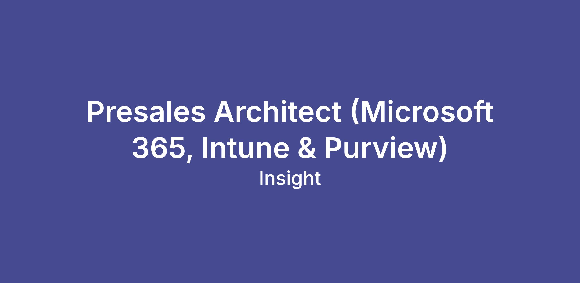 Presales Architect (Microsoft 365, Intune & Purview)