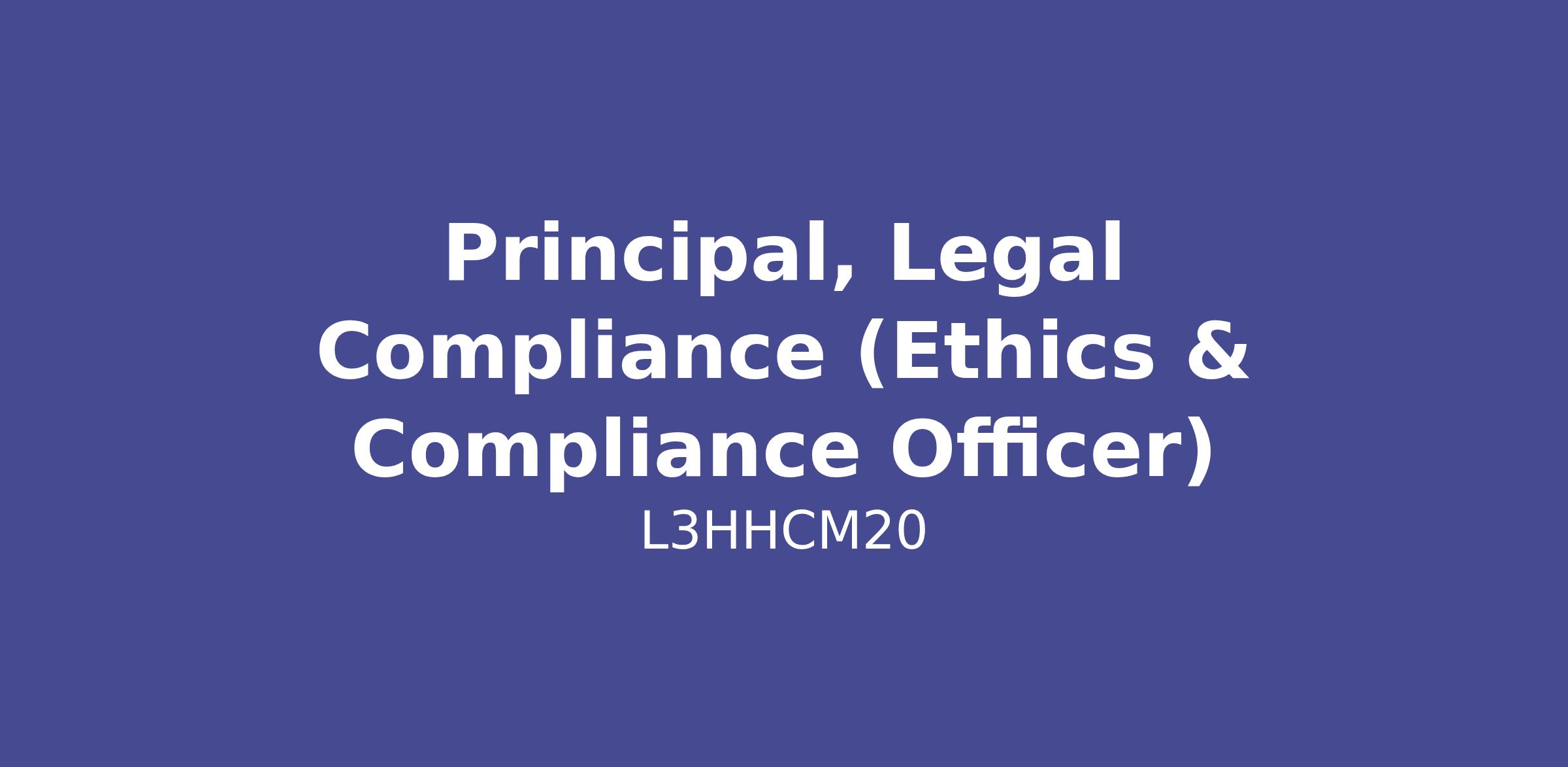 Job Title: Principal, Legal Compliance (Ethics & Compliance Officer)