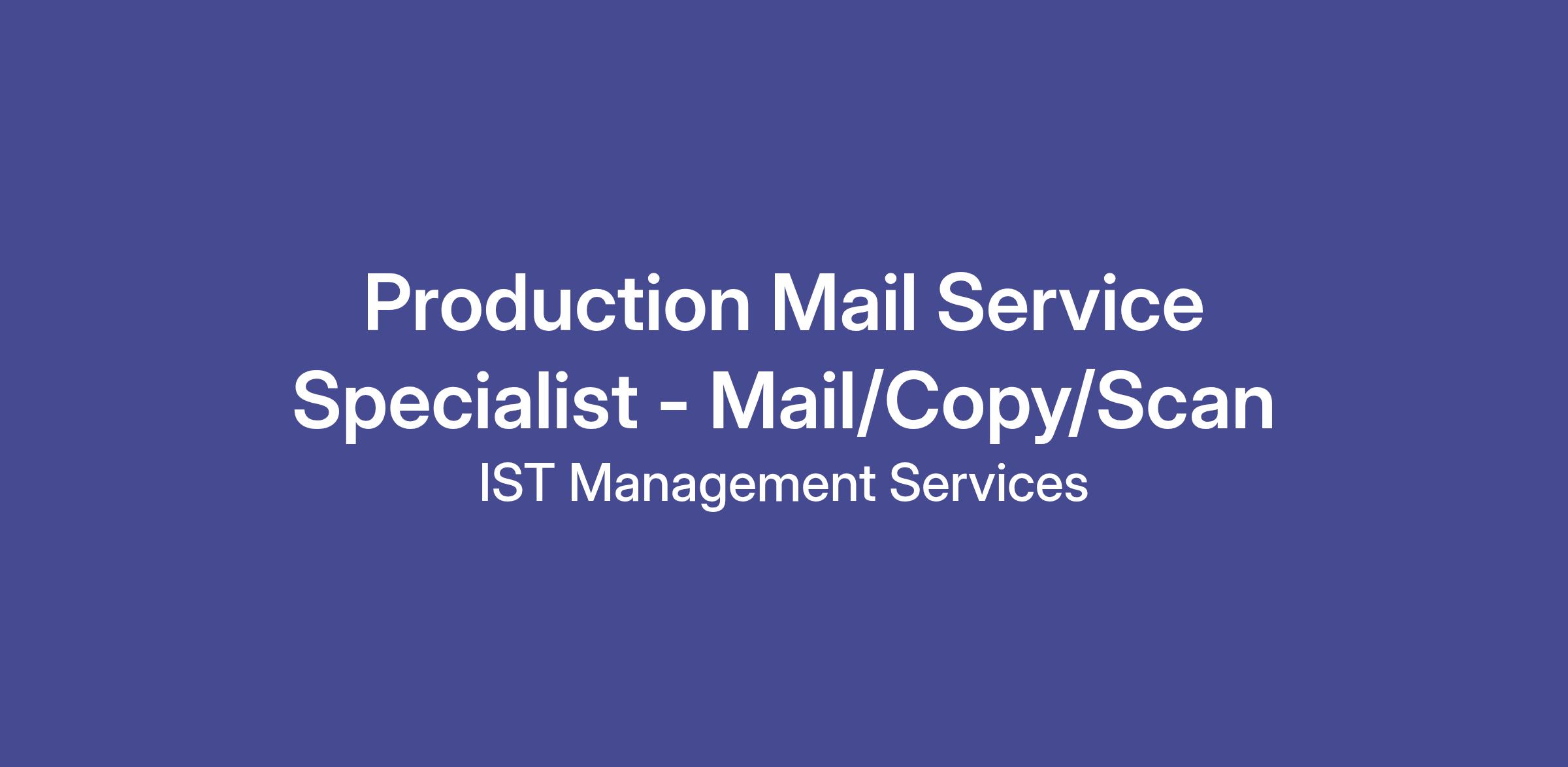 Consider a new career today as a Scanning/Copy/Mail Team member-Full-Time - Monday to Friday Day Shift - with IST Management Services, the fastest-growing, national, facilities management company in the industry. IST Management is a BPO Company (Business Process Outsourcing) specializing in providing solutions for the management of physical and digital information through Facilities Management, eDiscovery, and Electronic Document Management services.