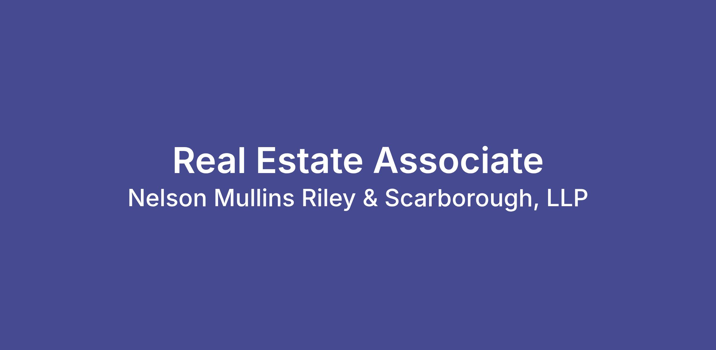 Are you looking to join a tenured team at an AmLaw100 firm? Nelson Mullins is seeking an associate to join its Real Estate group. This is a nationwide search.