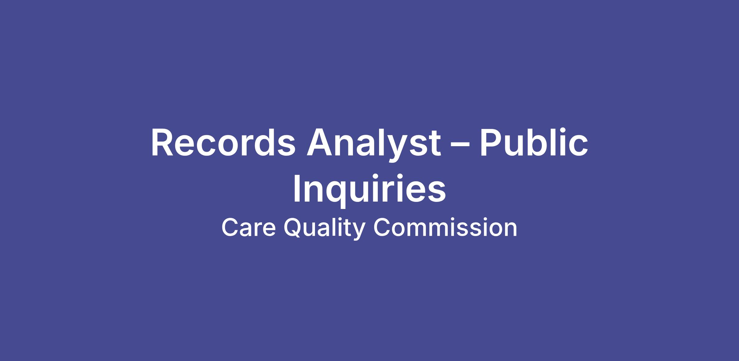 directly support transparency and public confidence. As a Records Analyst in Public