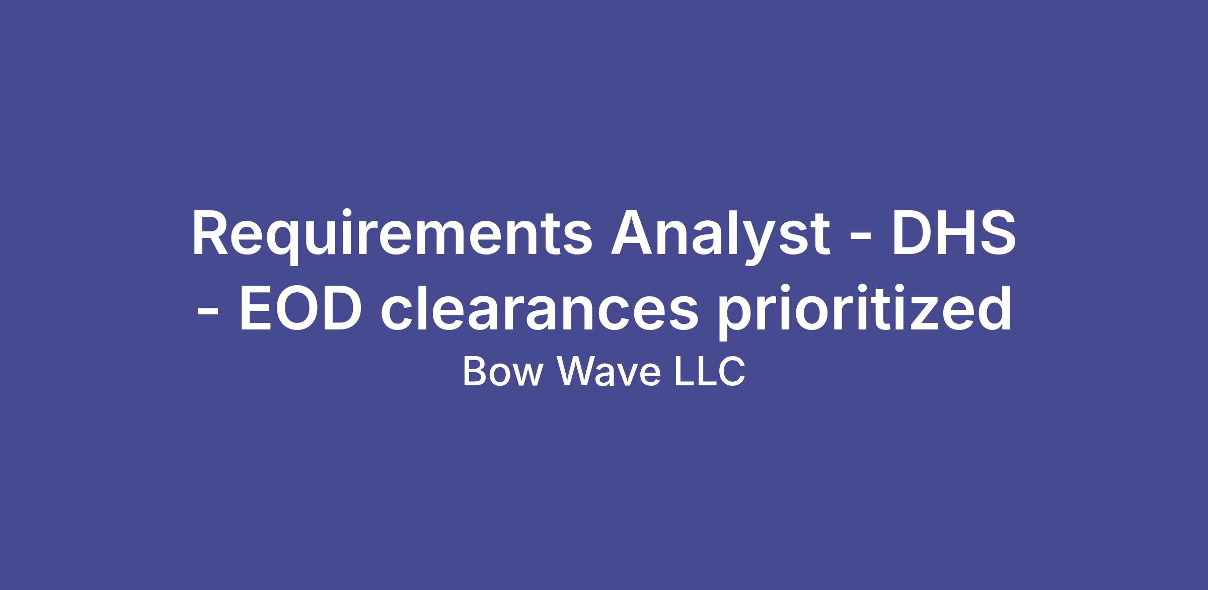 Bow Waveβ―is seeking Requirements Analysts – for those who seek to support a mission focused program in a challenging and dynamic environment. Analysts will be responsible for applying investigative, pragmatic, and mission driven aptitude in a fast-paced, collaborative environment.