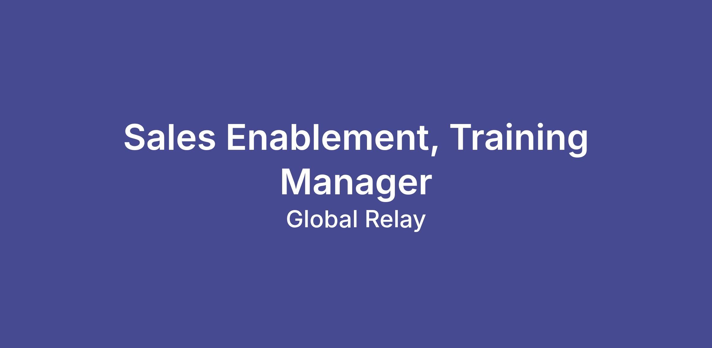 The Sales Trainer will play a critical role in enhancing the productivity and performance of Global Relay’s sales teams across our rapidly growing organization. This role involves close collaboration with the Sales Enablement, Sales Operations, Product Marketing, and other key departments to develop, deliver, and continuously optimize a comprehensive sales training and enablement program. You will be instrumental in ensuring that the sales team is equipped with the right tools, knowledge, and skills to succeed in a highly regulated, B2B SaaS environment.