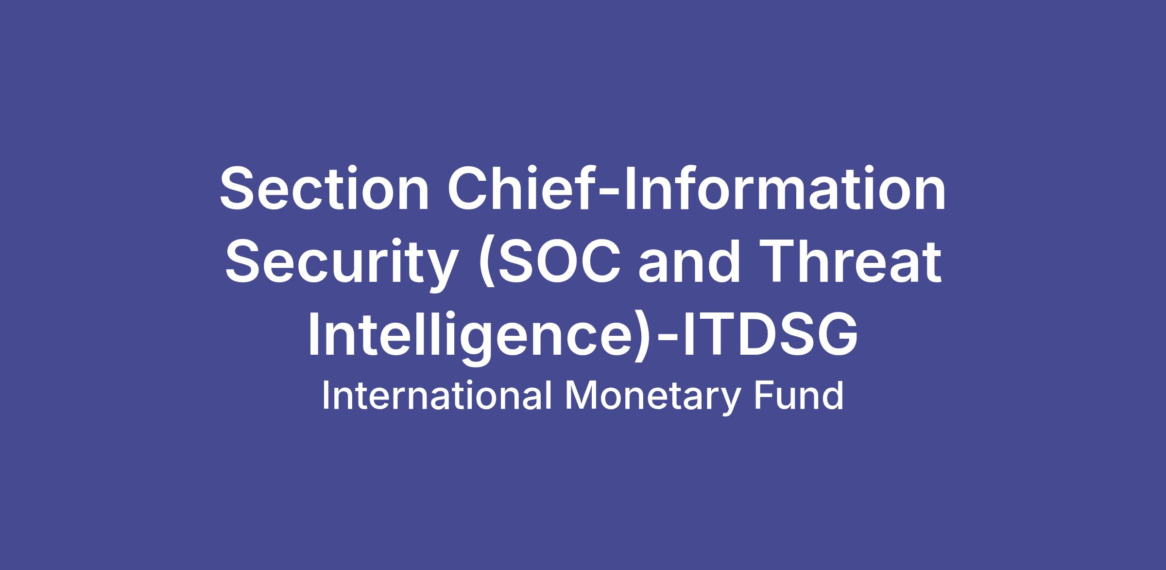 The Information Technology Department (ITD) of the International Monetary Fund (IMF) is seeking to fill a Section Chief-Information Security (SOC and Threat Intelligence). Under the general supervision of the Chief Information Security Officer, this role will be responsible for leading, developing, maturing, and scaling capabilities in cybersecurity monitoring, detection and incident and breach response, digital forensics, e-Discovery, and cyber threat management. The incumbent will lead and develop a team of highly skilled cyber security analysts to develop and mature these capabilities.