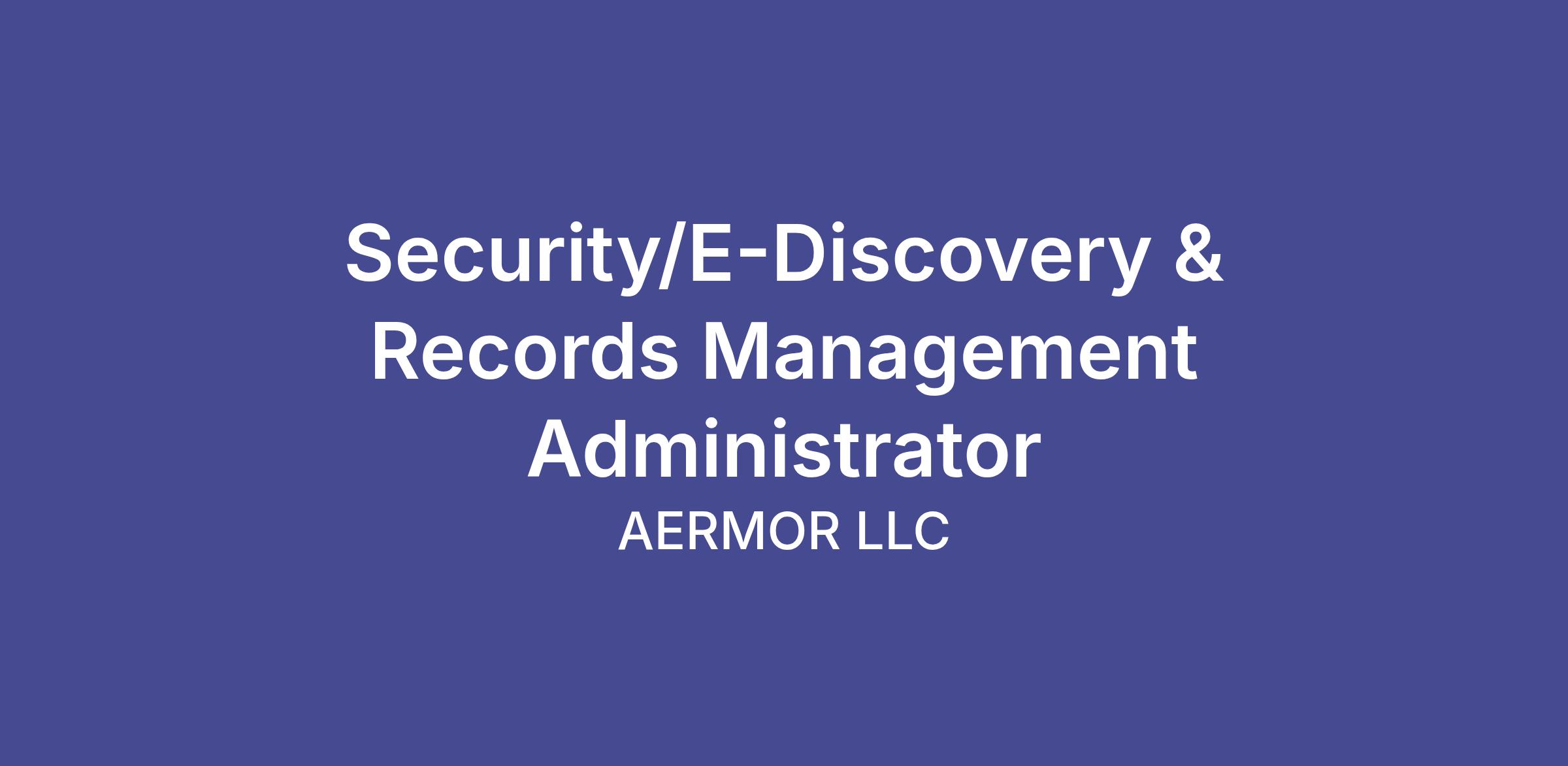 AERMOR is hiring a Security/E-Discovery & Records Management Administrator to take administrative action in response to reported electronic spillages of classified data, to include content search, quarantine, creating archival copies, and/or deletion of data.