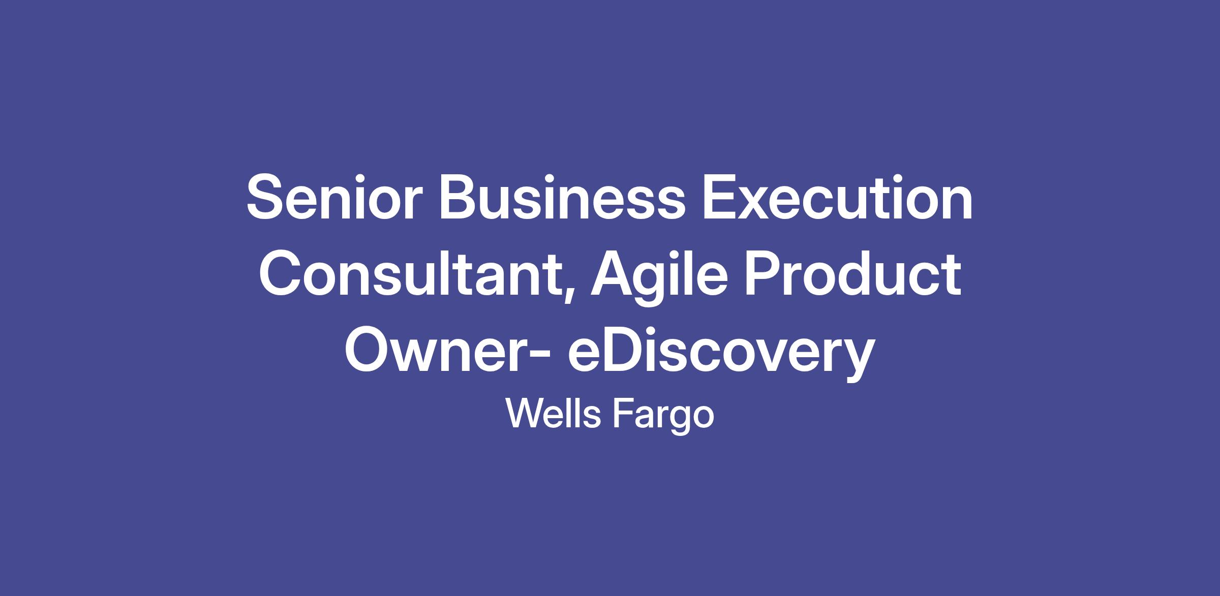 Wells Fargo is seeking an experienced Agile Product Owner to lead the Litigation Services/eDiscovery product within our Legal department. This is a high-impact role for a strategic thinker who thrives at the intersection of technology, data, and client engagement. Youβll drive innovation in a highly controlled legal environment, leveraging data analysis to uncover insights, translating findings into actionable strategies for leadership, and building strong relationships with stakeholders to deliver exceptional outcomes.