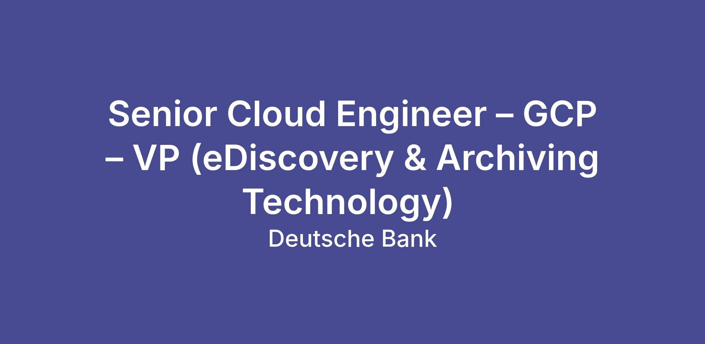 Job Title: Senior Cloud Engineer – GCP – VP (eDiscovery & Archiving Technology)