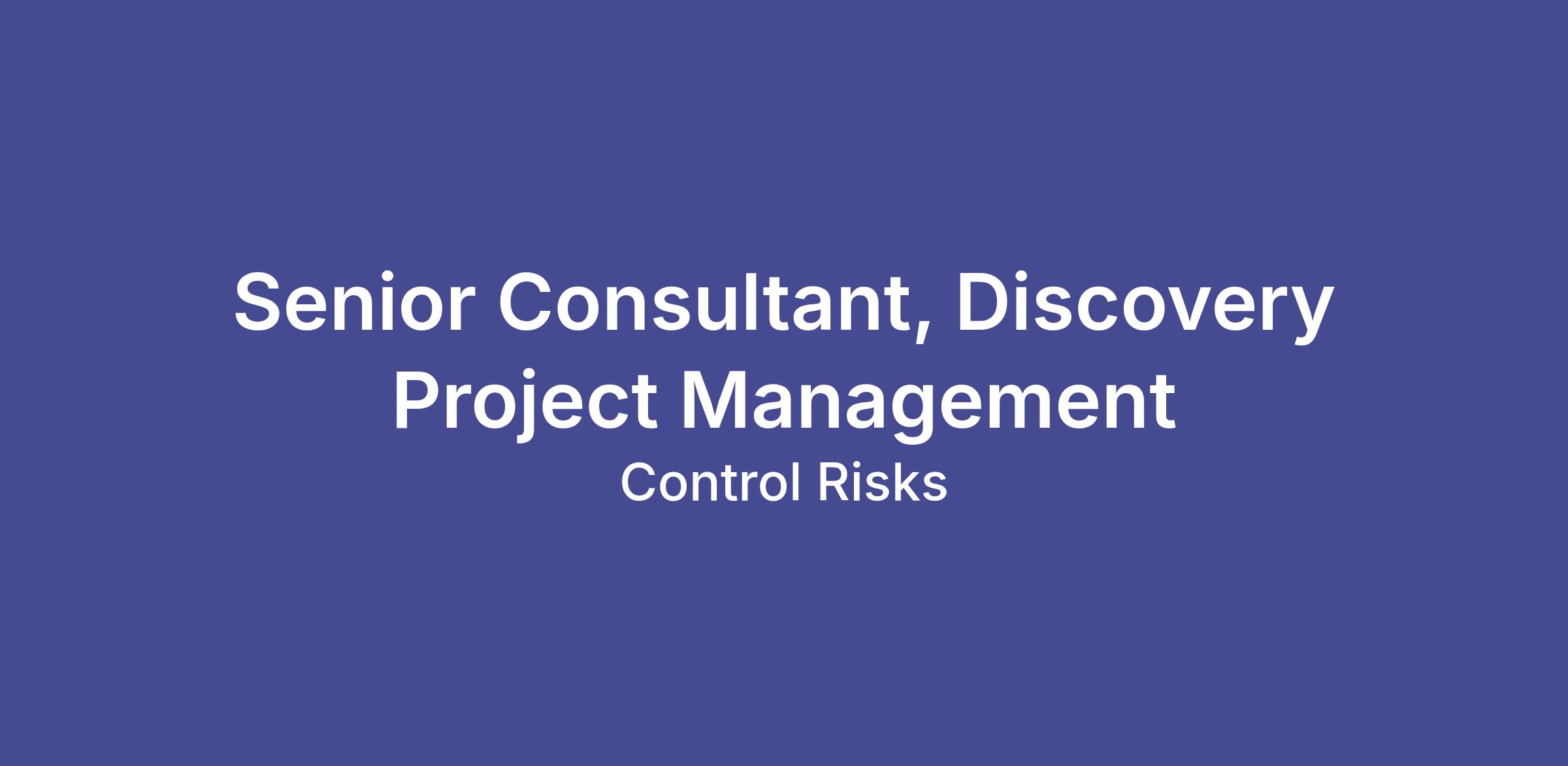 Senior Consultant, Discovery Project Management