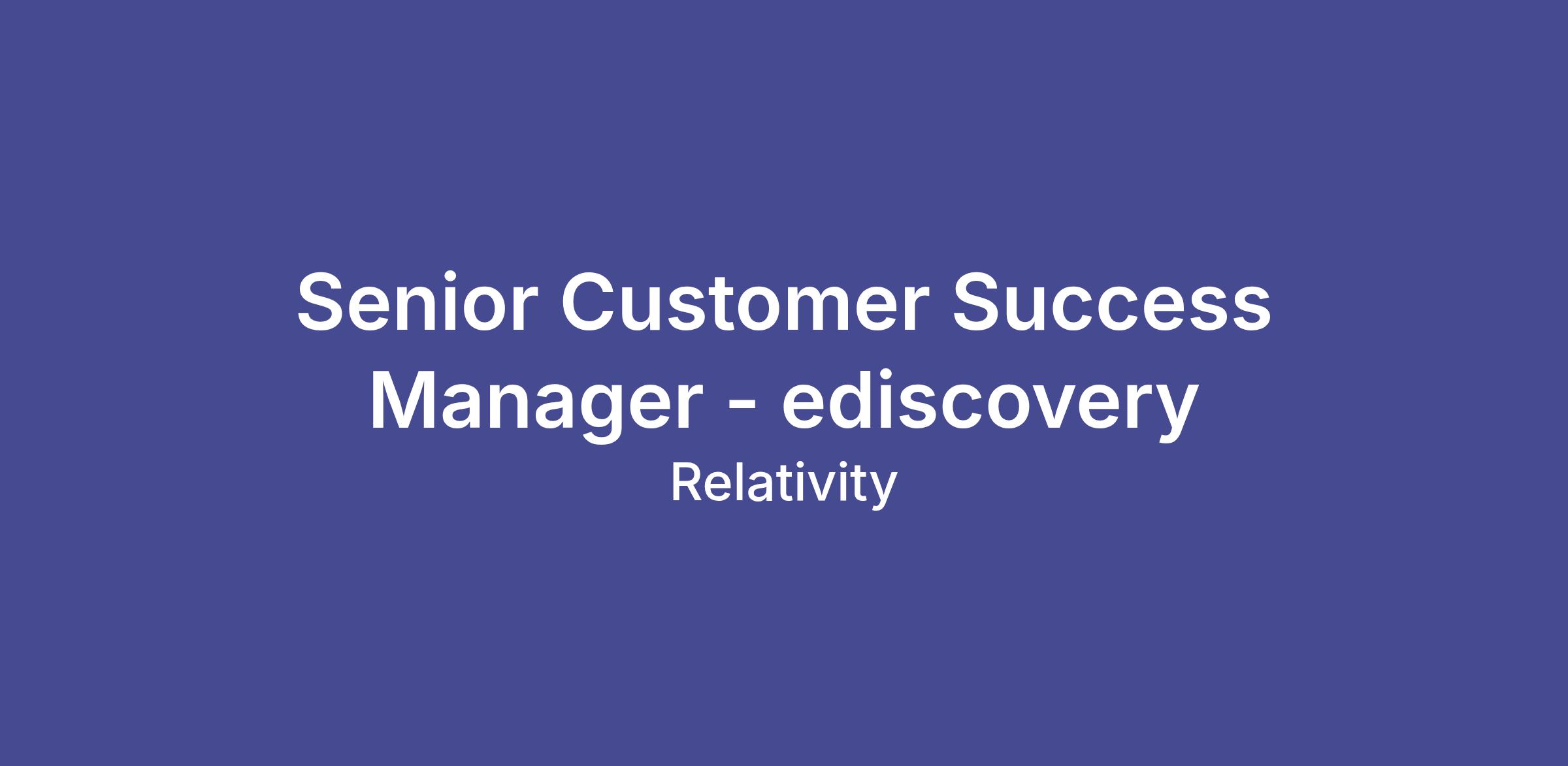 The Customer Success Management Team supports our customers in meeting their goals using the Relativity suite of products. The team guides overall value and product adoption based on the customer's individual requirements and segment best practices. The team works with Sales to understand account health and to identify any product or contract retention risks. The Senior Customer Success Manager understands the goals and needs of our customers. You will create annual account plans to document and provide both customer and Relativity goals for each specific customer. You will coordinate with teams across the business to achieve these goals and create cross-organizational clarity on progress, outcomes, and challenges while advocating for shared value. Goals might include: introducing and implementing new features, expanding to new geographies or use cases, ensuring resolution of technical issues, increasing efficiency with new workflows, orchestrating meaningful multi-threaded engagement between the customer and Relativity.Job Description and Requirements
