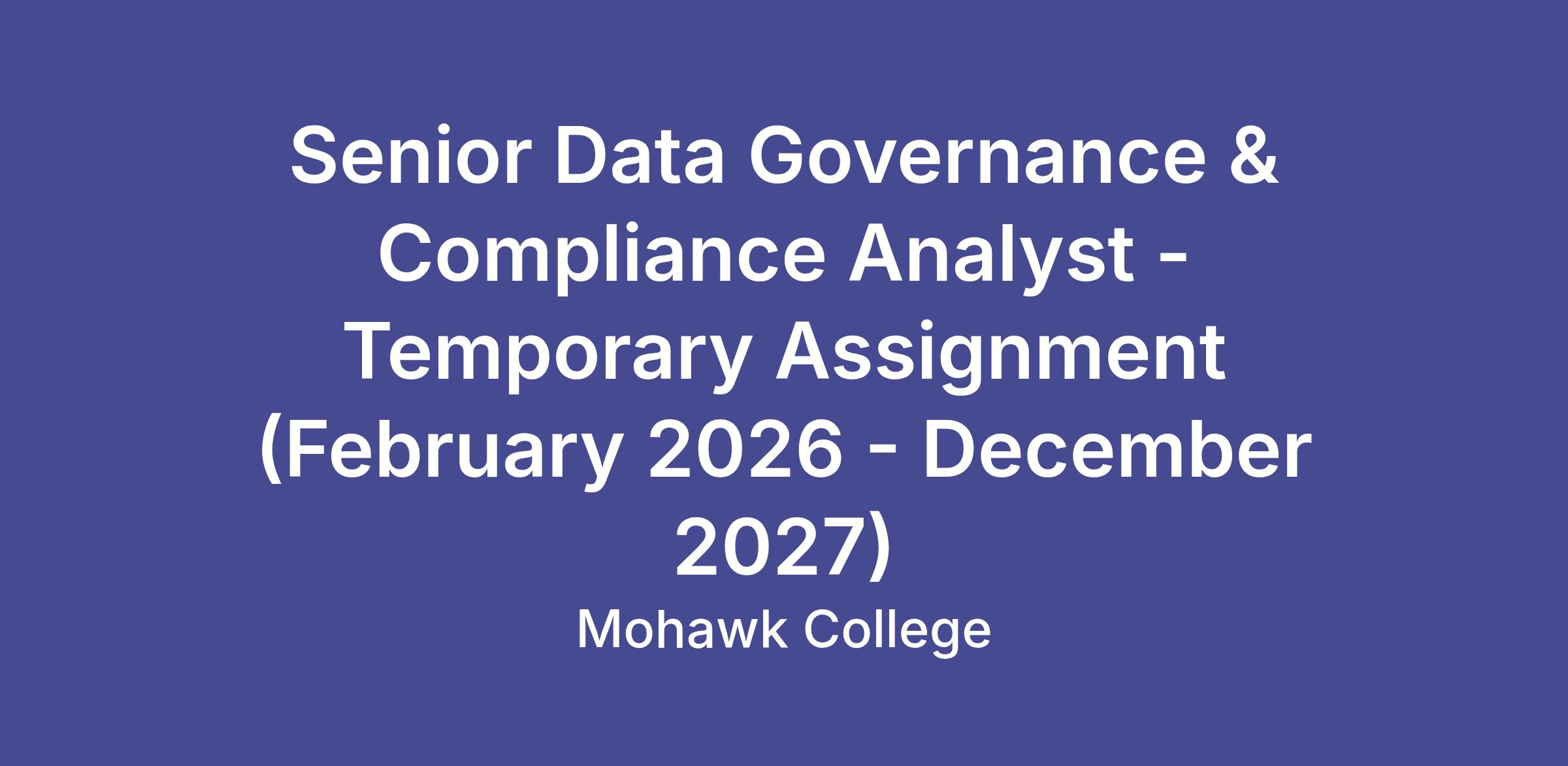 Senior Data Governance & Compliance Analyst - Temporary Assignment (February 2026 - December 2027)