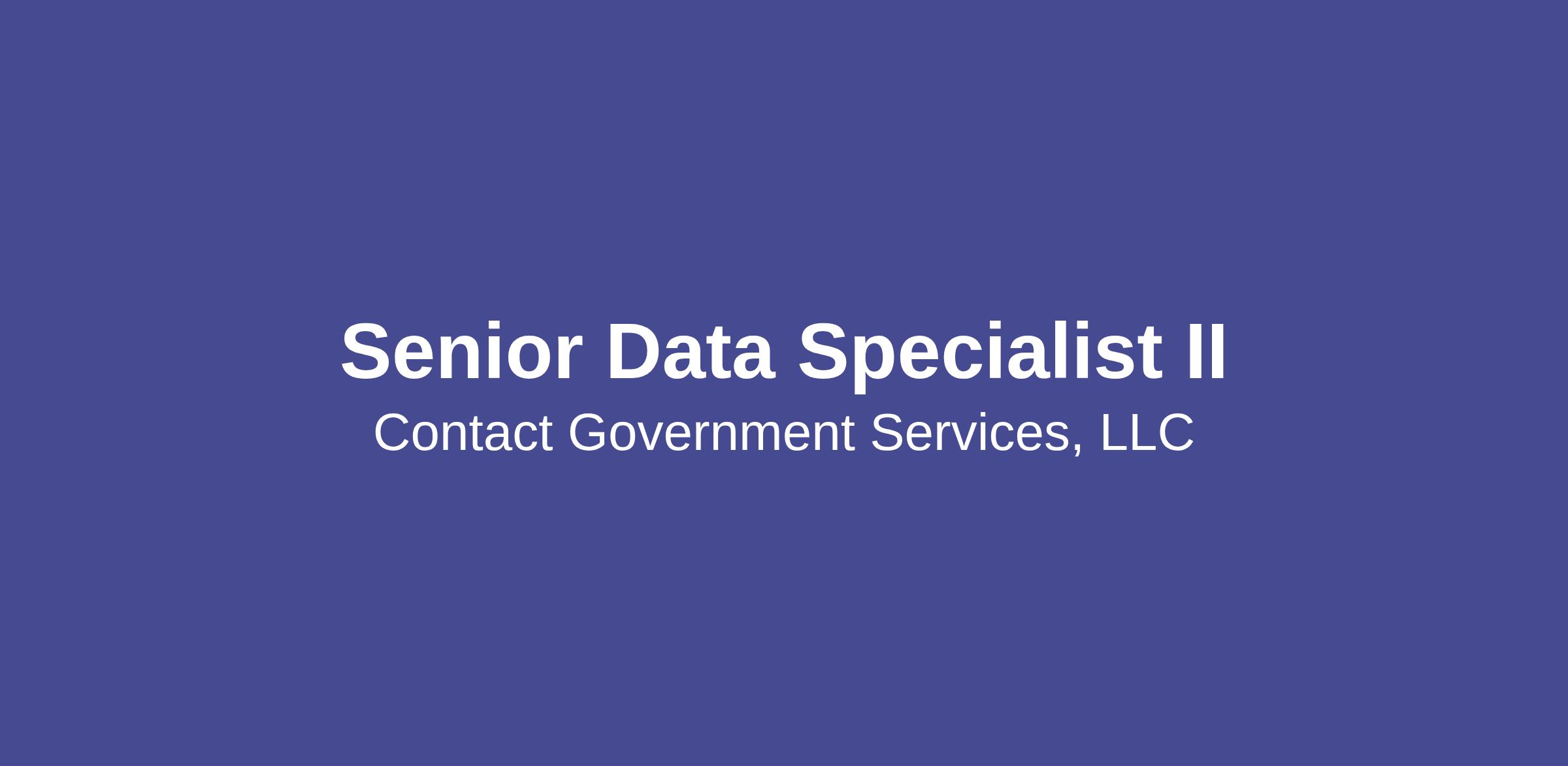 Senior Data Specialist II