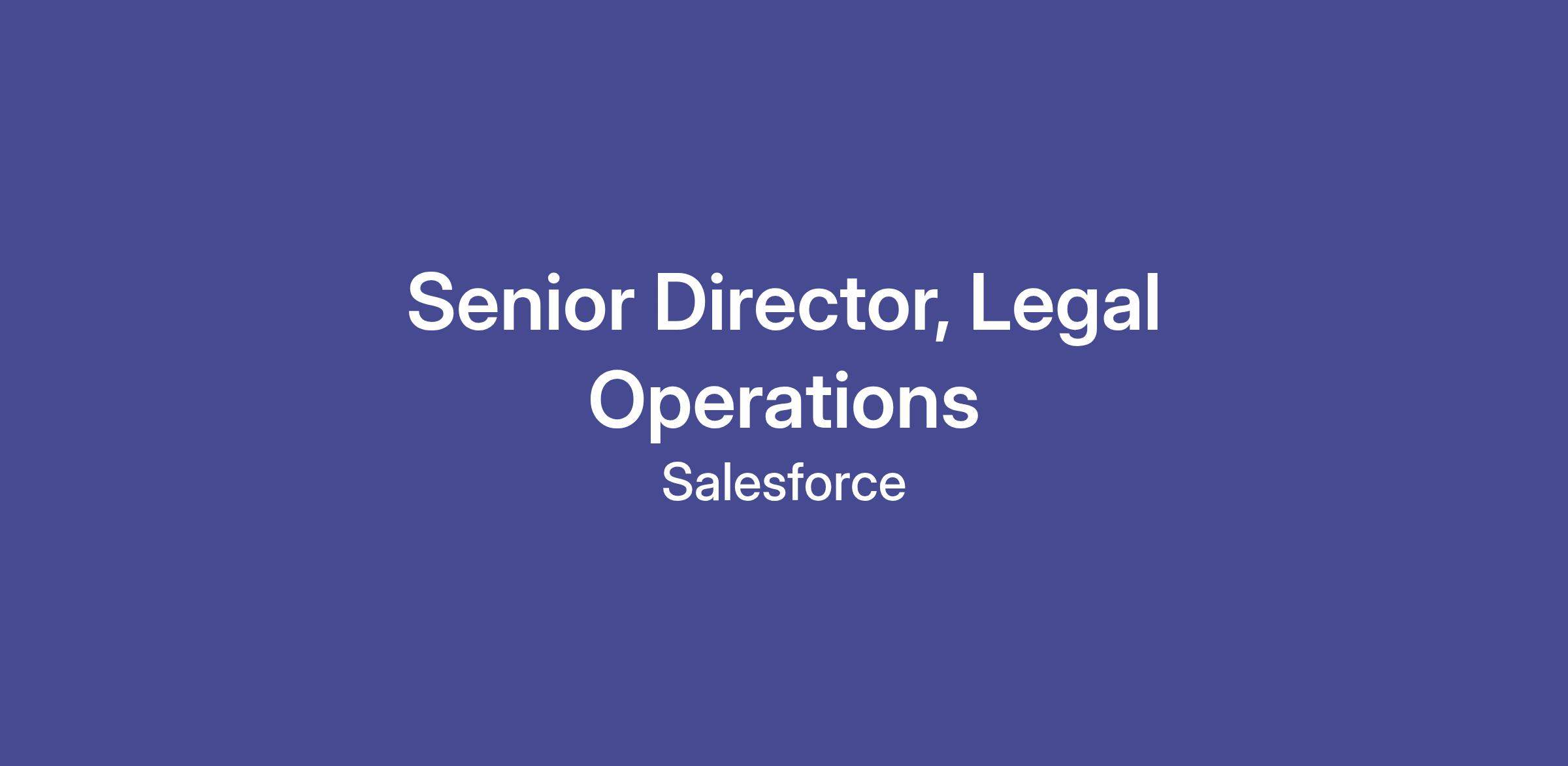 We are seeking an exceptional Senior Director to lead our Legal Operations function within Legal & Corporate Affairs Innovation & Operations, Salesforce's new organization focused on driving innovation as we become the world's first and best Agentic Legal Department. This role will oversee operational innovation and excellence in Shared Services, Contract Lifecycle Management, eDiscovery, and Outside Counsel Management while positioning them at the forefront of AI adoption in legal operations. The role will also partner closely with the other two Innovation & Operations pillar leads, overseeing Legal Innovation & Strategic Initiatives and Knowledge & Enablement.
