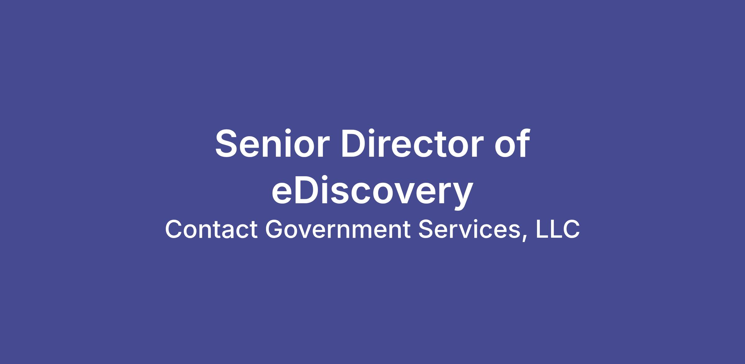 Contact Government Services is seeking an experienced and motivated Senior Director of eDiscovery for one of our large government projects. This is an exciting opportunity to lead an electronic discovery team within the Government. This position is responsible for supporting the Government’s professionals in all aspects of litigation support and e-discovery processes, including providing project management, Electronically Stored Information (ESI) intake, data analysis, early case assessment, document production, and liaising with third-party vendors.