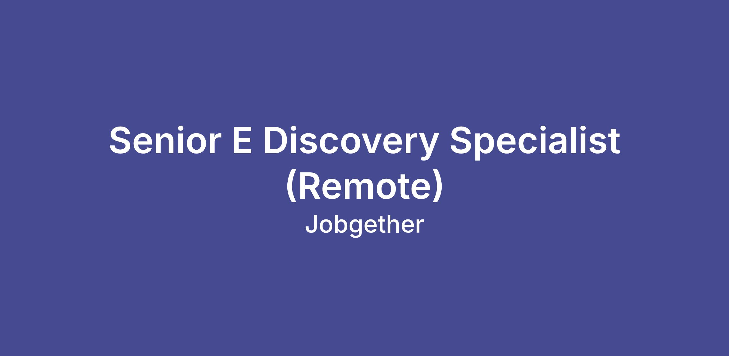 Senior E Discovery Specialist (Remote)