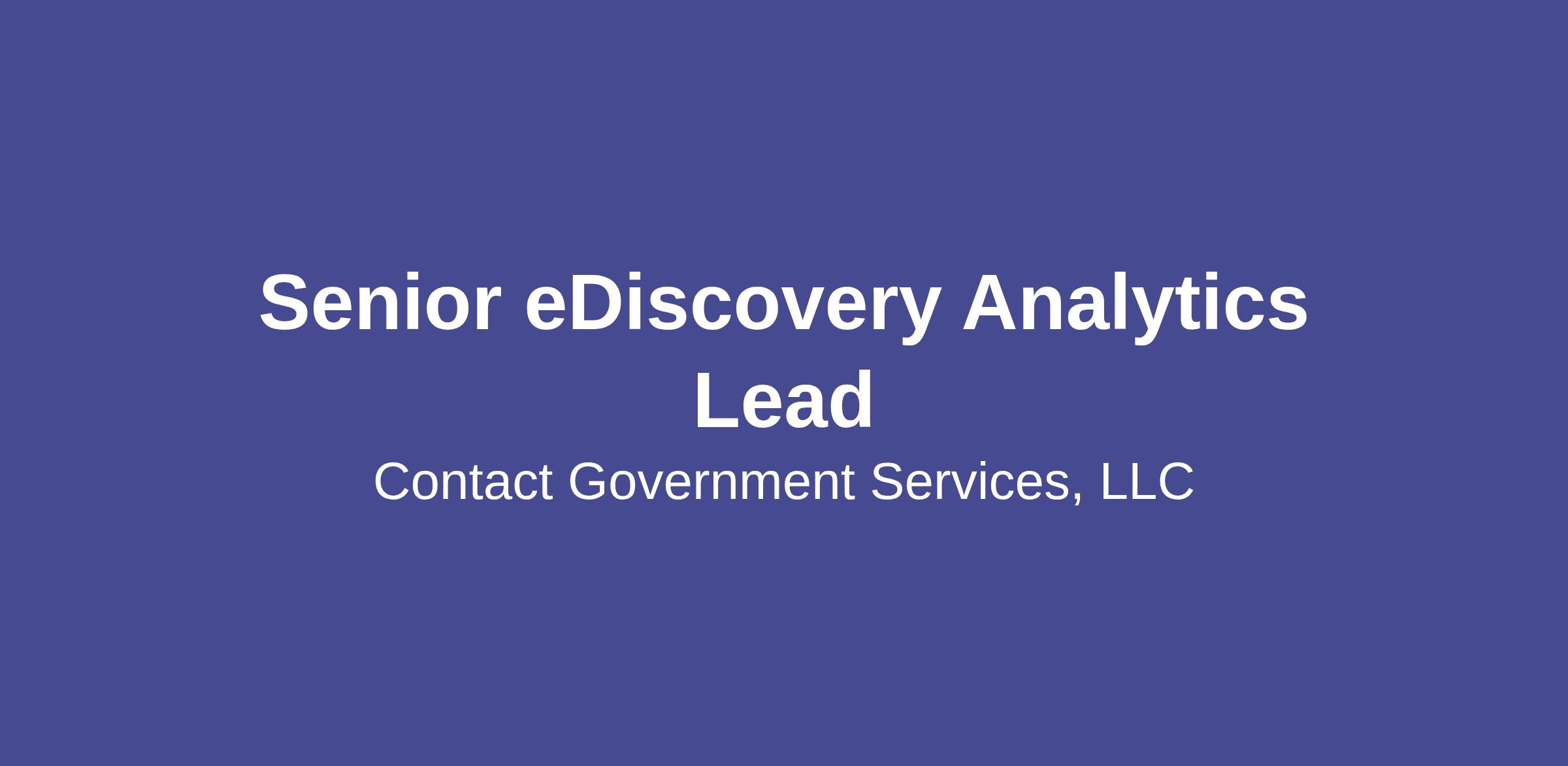 As a Senior eDiscovery Analytics Lead for Contact Government Services, you will be using your legal experience to aid a large federal agency in achieving its mission. You will be providing electronic discovery technical support and assisting with strategic and legal aspects using Relativity.