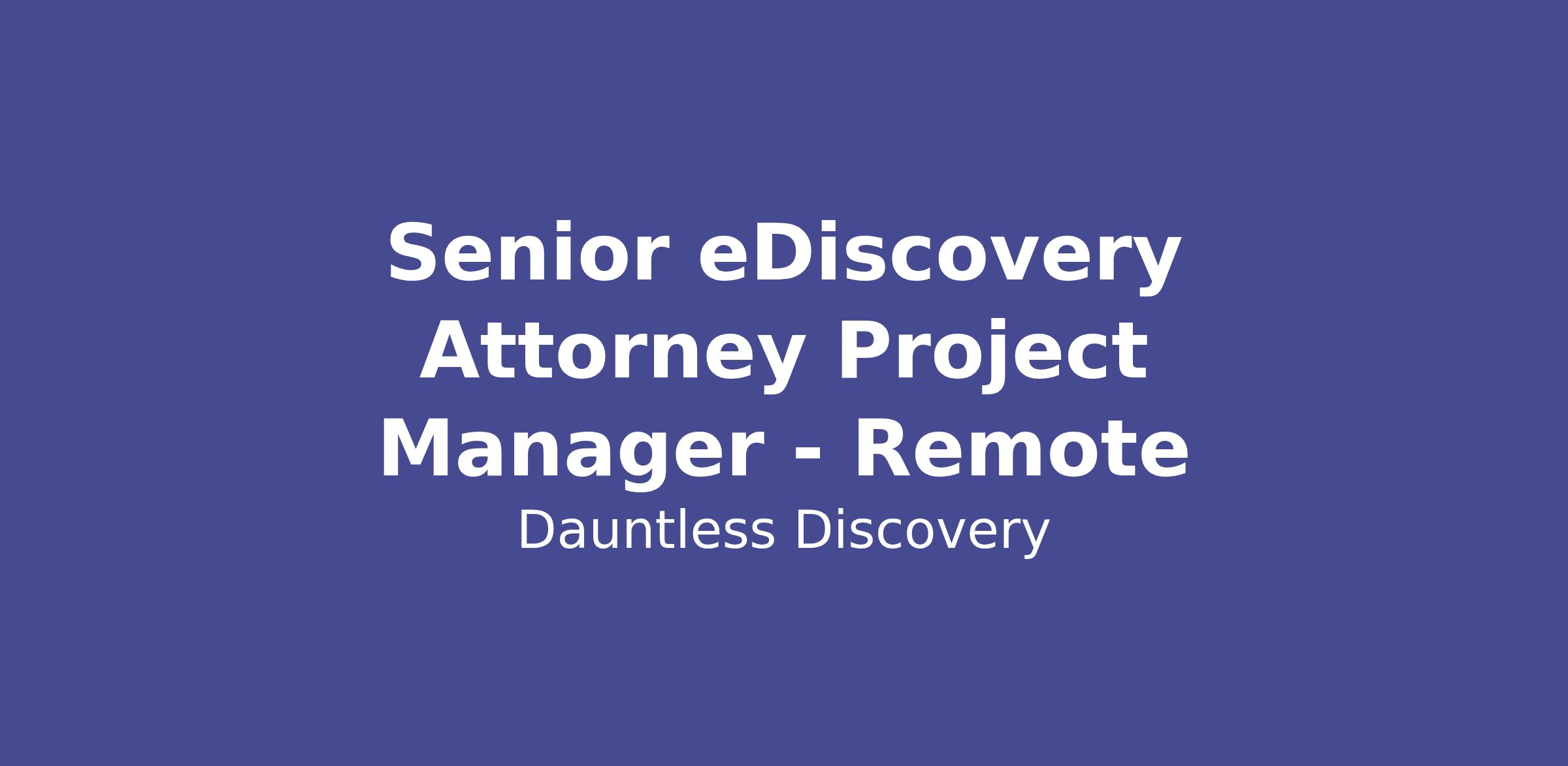 Senior eDiscovery Attorney Project Manager - Remote