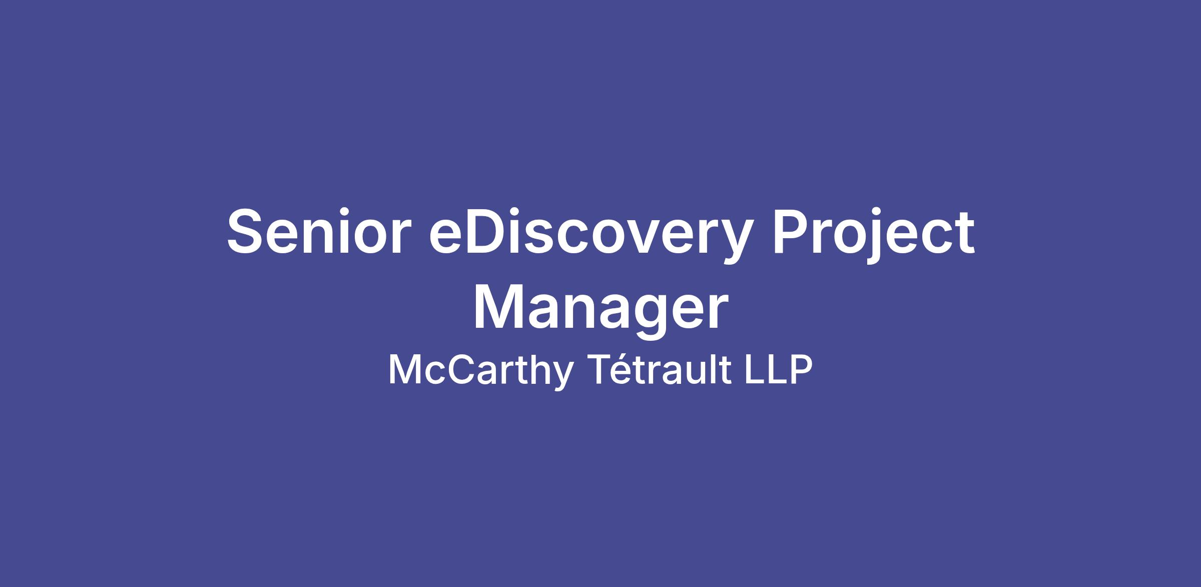 We are recruiting for a Senior eDiscovery Project Manager to join our team in our Toronto office. The successful candidate must have a minimum of 10+ years of experience in project management, case management, or law clerk roles within the legal/e-Discovery industry and will be responsible for leading end-to-end e-Discovery projects, including advising clients on technology and strategy, managing cross-functional teams, overseeing legal holds and data collection, developing project plans and budgets, ensuring quality control, and delivering projects on time and within scope and budget. McCarthy Tétrault employees benefit from a hybrid work environment. This position is to fill an existing vacancy.