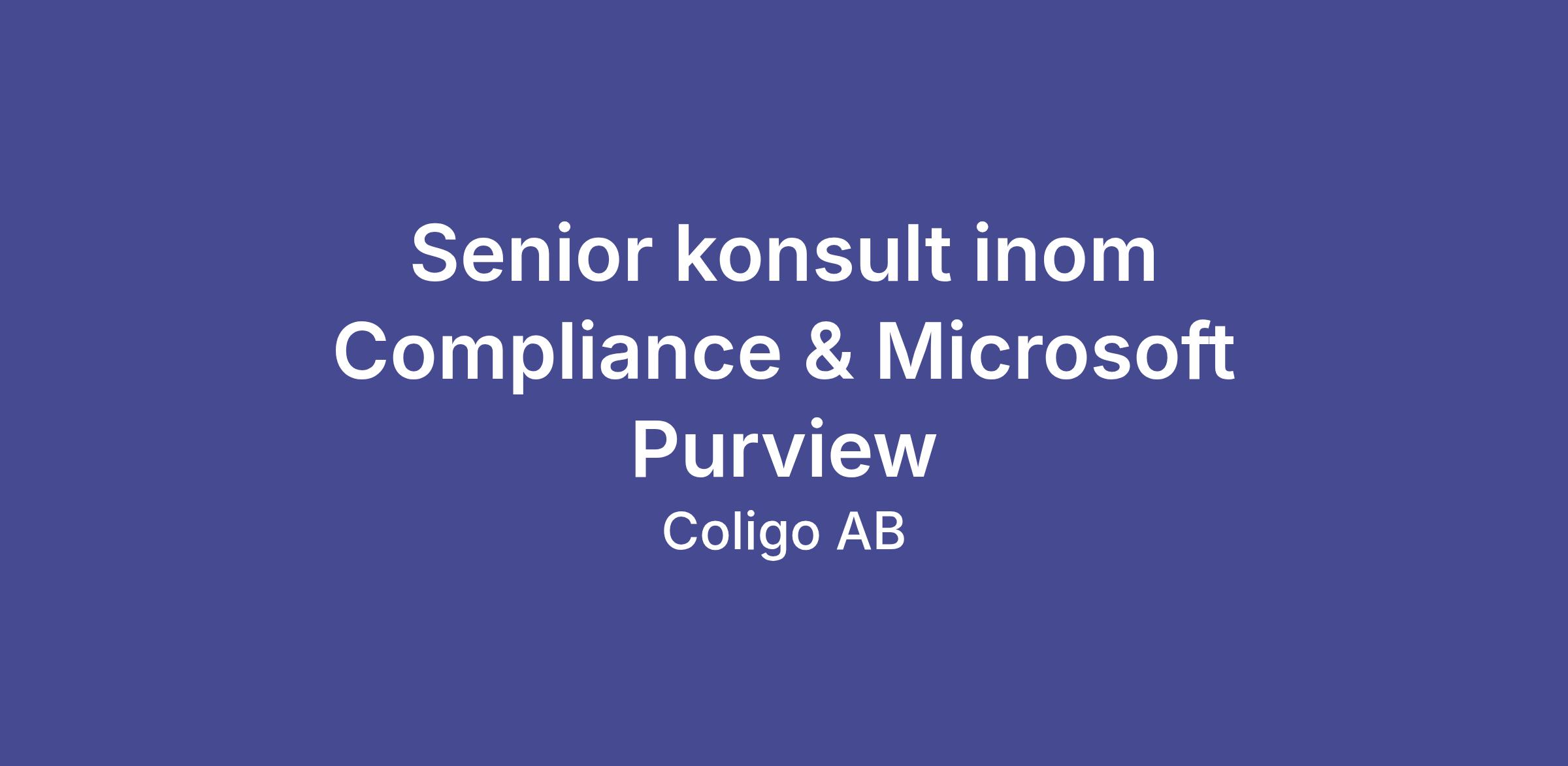 Coligo söker en senior konsult med djup erfarenhet av Compliance och Microsoft Purview. Du kommer få jobba med några av de mest intressanta projekten på svenska marknaden just nu, där kunder behöver hjälp att få kontroll på data, minska risker och samtidigt göra livet enklare för användarna (ja, det går!).