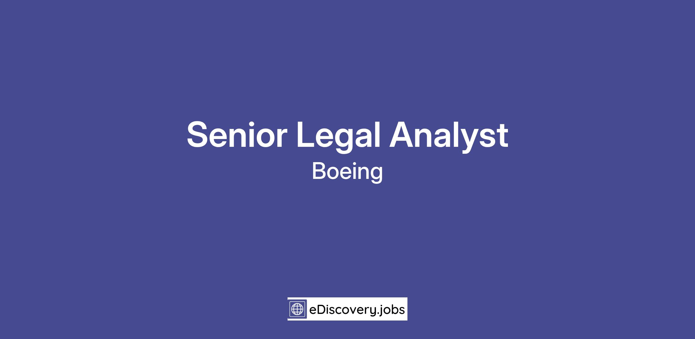 The Boeing CompanyBoeing’s Law and Global Compliance organization is seeking a highly skilled, Senior Legal Analyst to support our Litigation and Investigations team. Under the guidance of Boeing attorneys, this position provides critical support for internal and external investigations, regulatory inquiries, responding to external and internal audits, and litigation matters. We are open to both Level 4 and Level 5 Senior Legal Analyst to join our team.