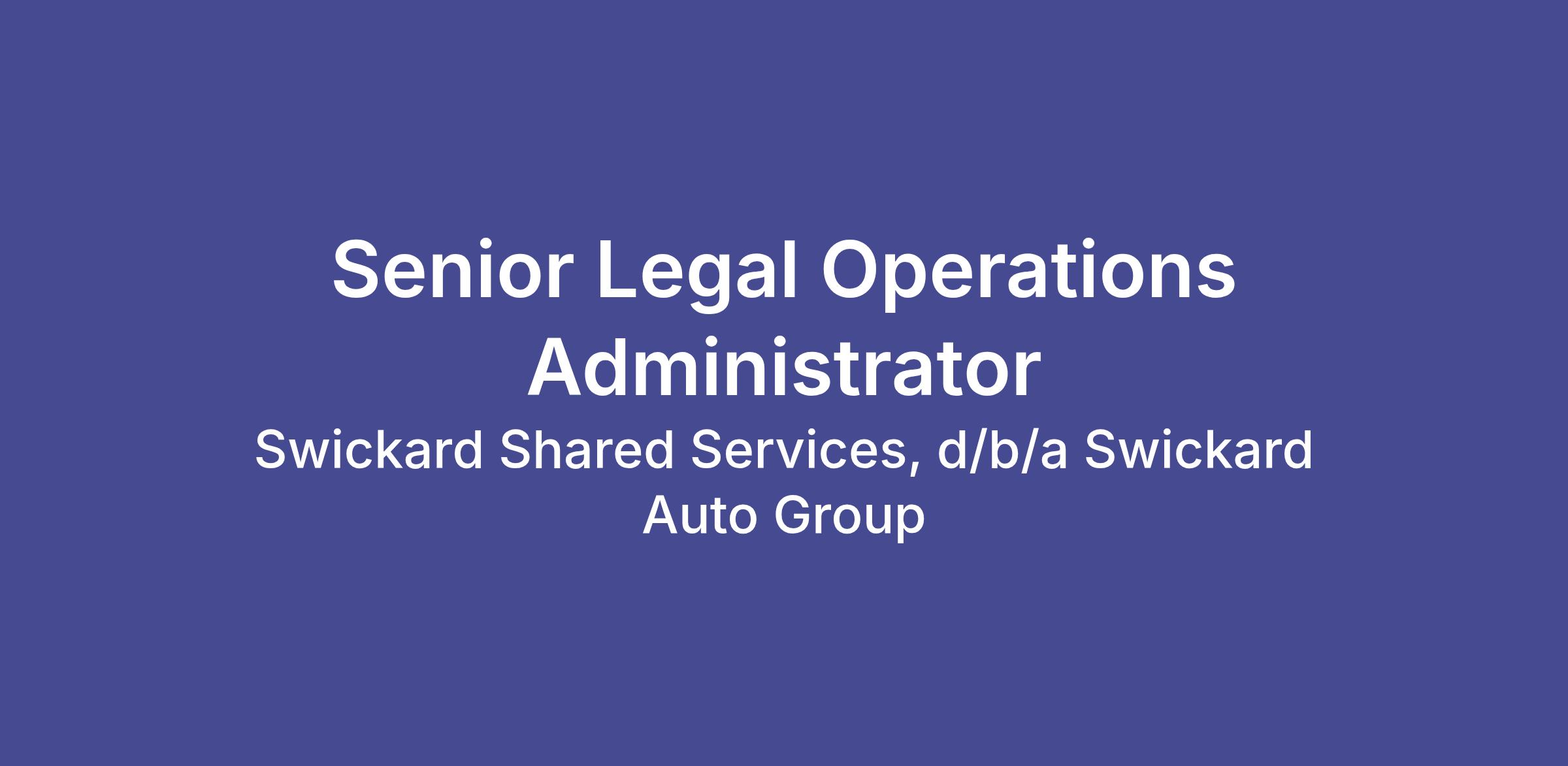 The Senior Manager of Legal Operations serves as the operational leader of Swickard’s legal department, providing comprehensive management of litigation, outside counsel relationships, and legal support staff across our locations in six states.