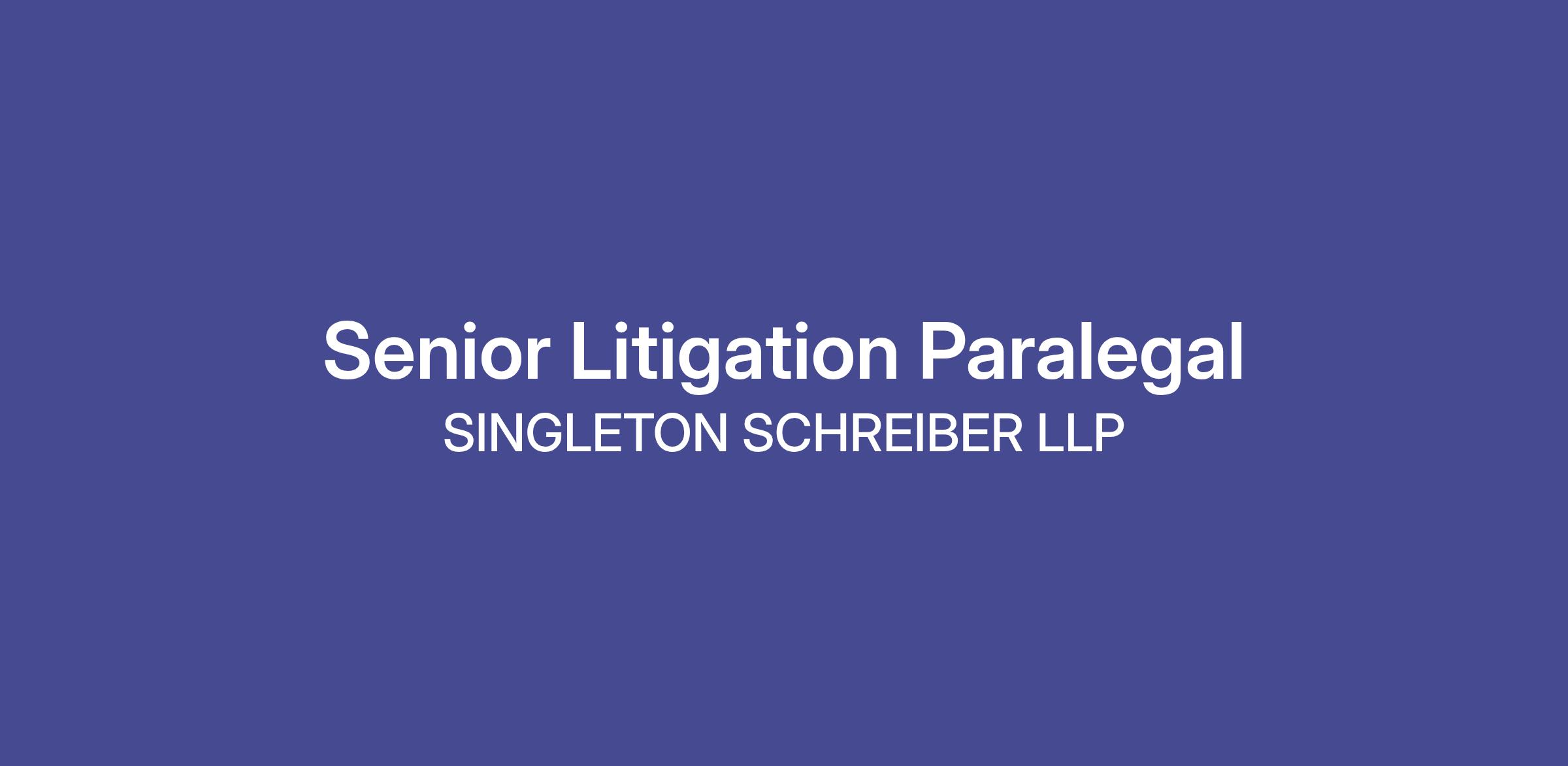 JOB DESCRIPTION: Singleton Schreiber, LLP is seeking an experienced, motivated, and detail-oriented senior litigation paralegal to join our Sexual Assault and Human Trafficking team. This position is fast-paced and supports a team of attorneys performing litigation in state and federal courts. It will involve collaboration of other paralegals and case assistants.