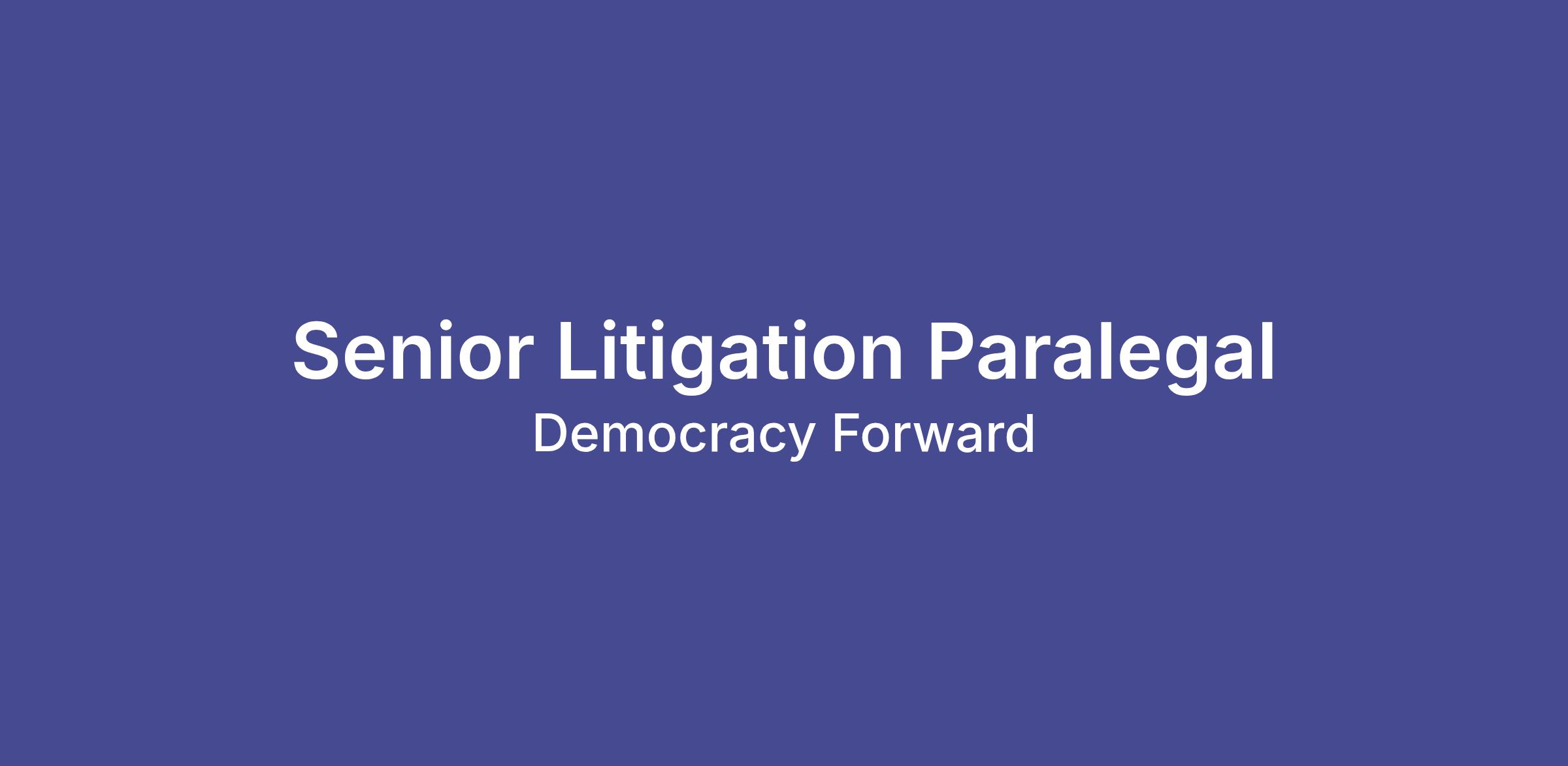 Democracy Forward Foundation ("Democracy Forward") is seeking multiple full-time Senior Litigation Paralegals to carry out its mission to promote pro-democracy and progressive policies and ideals via litigation and regulatory engagement. These individuals will serve as an integral part of litigation case teams and ensure that case filings are produced in a timely and professional manner. These positions are part of the Legal Team.