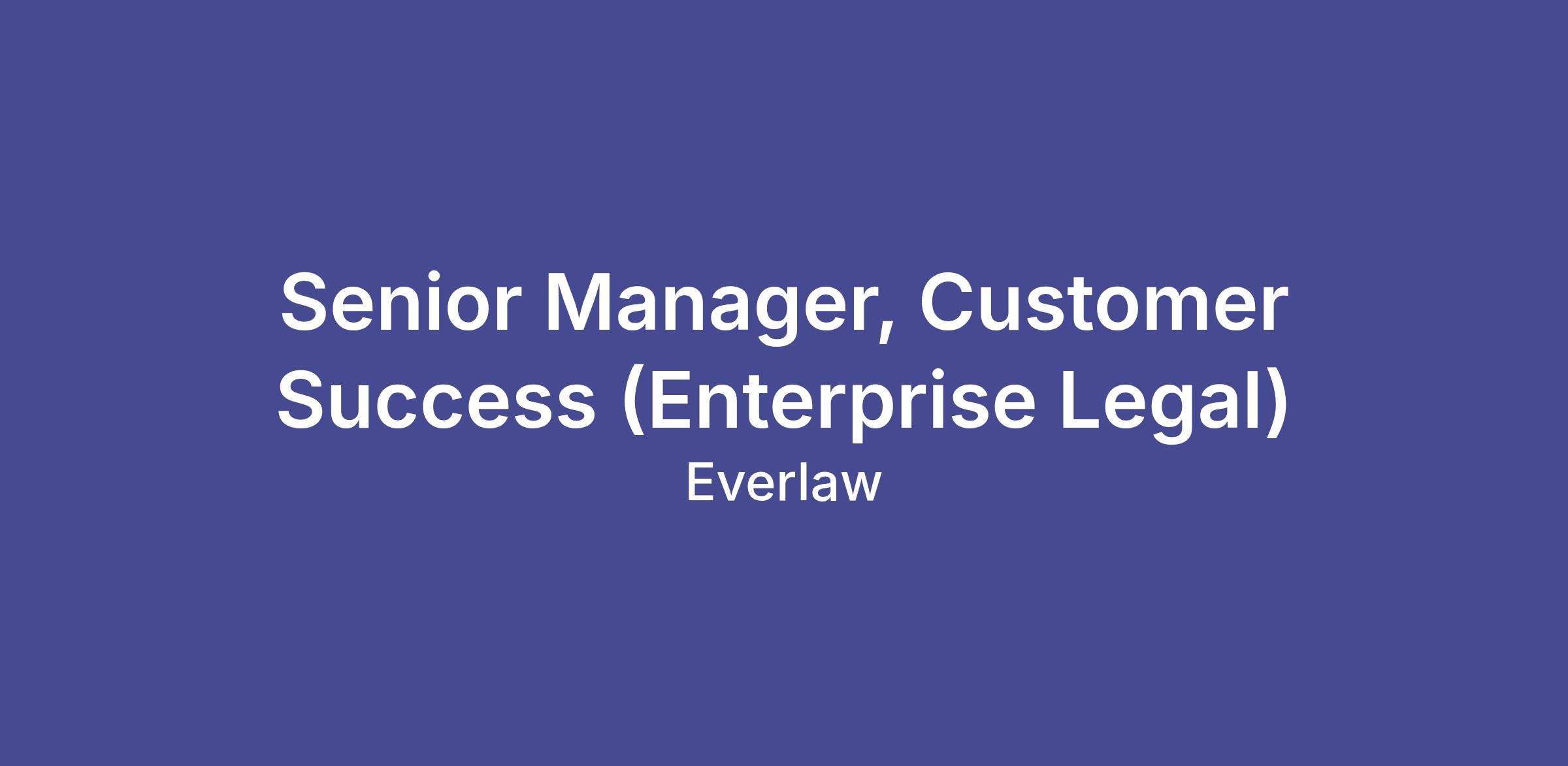 Everlaw is seeking an experienced Sr. Manager of Customer Success that meaningfully contributes toward establishing a best in class Customer Leadership Team, delivers on results, and helps define and implement effective consumption-based customer success for the technology industry. You’ll embody our company values of mutual respect, egoless communication, a drive to set a higher bar, and a relentless focus on the client experience. As a member of the Customer Success team, you’ll be responsible for leading a team of Customer Success Managers and Customer Success Associates who are responsible for the entire post-sale client experience in our Legal Enterprise segment. You’ll develop a team that provides an industry leading customer experience by partnering with clients on the segment-specific best practices for using Everlaw within their technology stack, managing escalations, and helping customers realize the full value of their investment in Everlaw. You’ll also deeply collaborate across the company, partnering with Sales, Business Development, Product, Engineering, Finance, Marketing and the rest of the Customer Experience organization (including Support and User Education) to ensure a value-driven user experience. Your work will matter — you'll greatly impact the day-to-day experience of our customers, the growth of the company, and be a strategic leader for the CS Team.