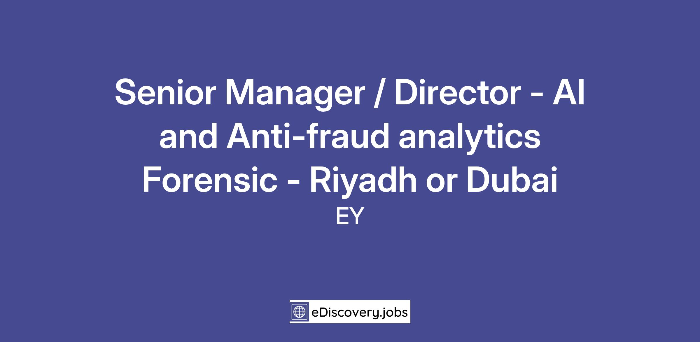 - Minimum 10+ years for Senior Manager or/and minimum of 15+ years for Director; of work experience in the Forensics and technology space, with keen focus on AI
