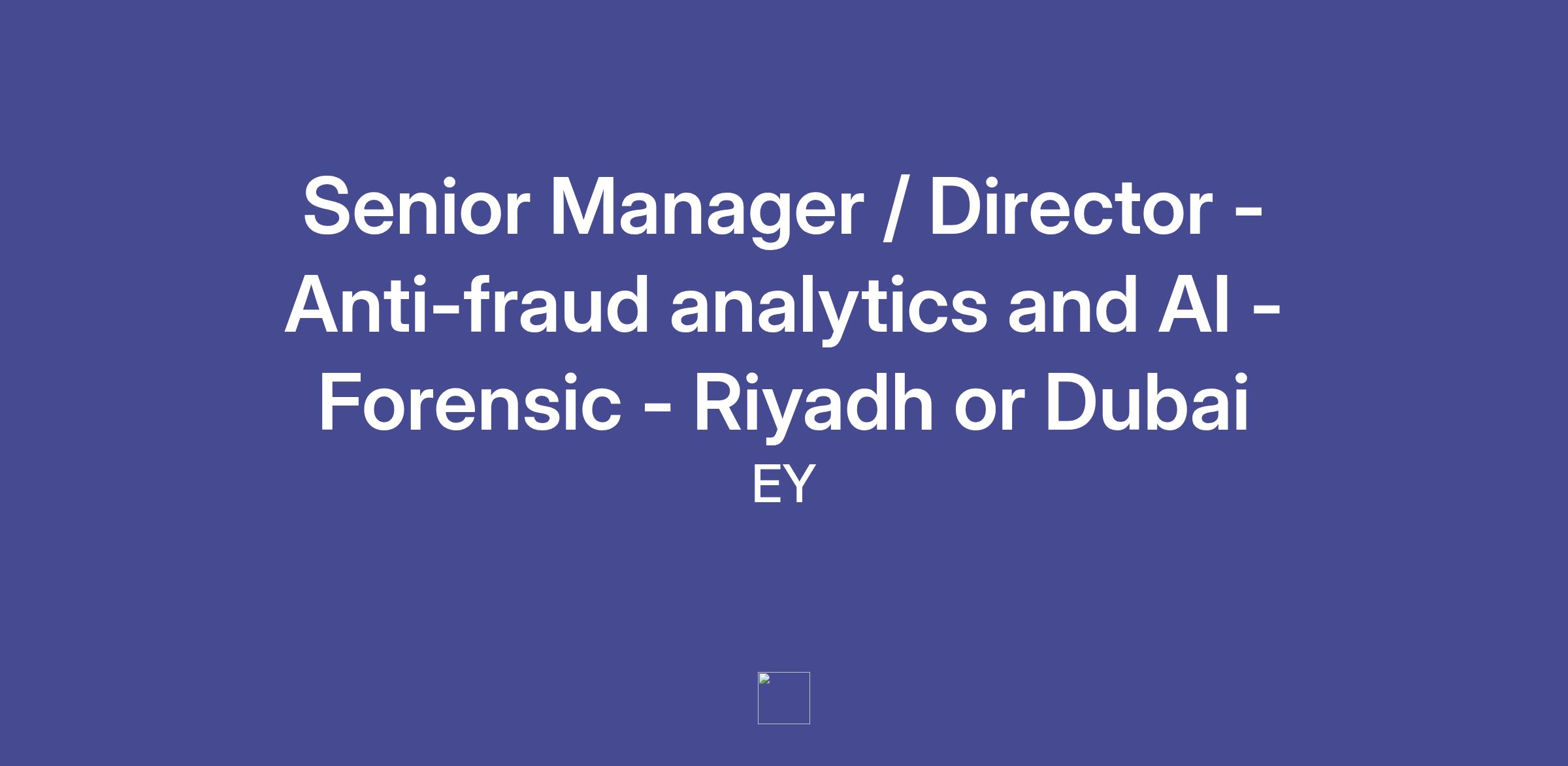 - Minimum 10+ years for Senior Manager or/and minimum of 15+ years for Director; of work experience in the Forensics and technology space, with keen focus on AI