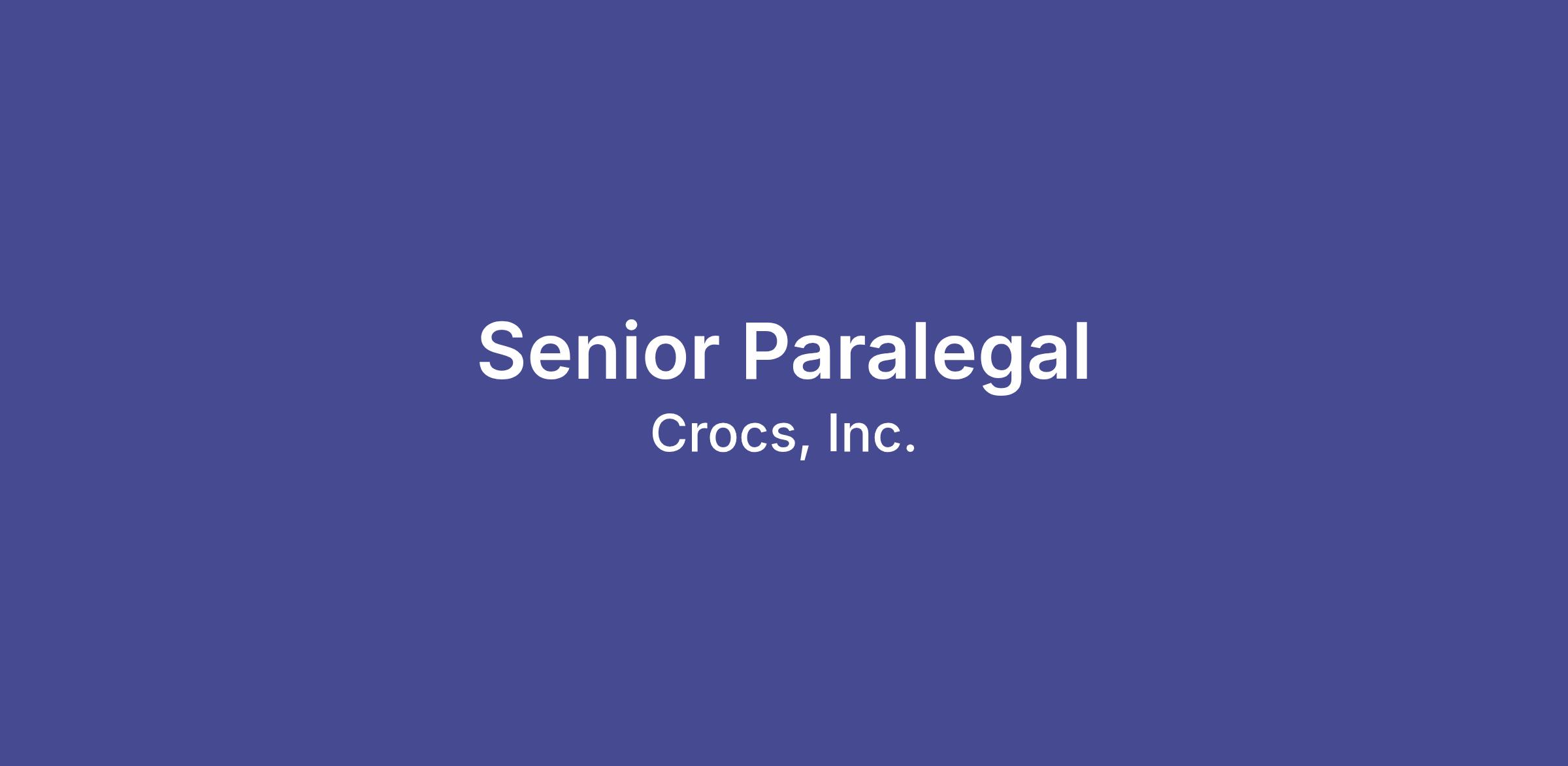 The Senior Paralegal for Crocs, Inc., serves as the lead paralegal for the enterprise, providing advanced legal support across corporate governance, litigation, and e-discovery matters. We expect this role to partner closely with attorneys and business stakeholders, operate independently in a complex global environment, and provide day-to-day leadership for junior non-attorney staff. This role reports to the GVP, Deputy General Counsel in our Broomfield, Colorado office.
