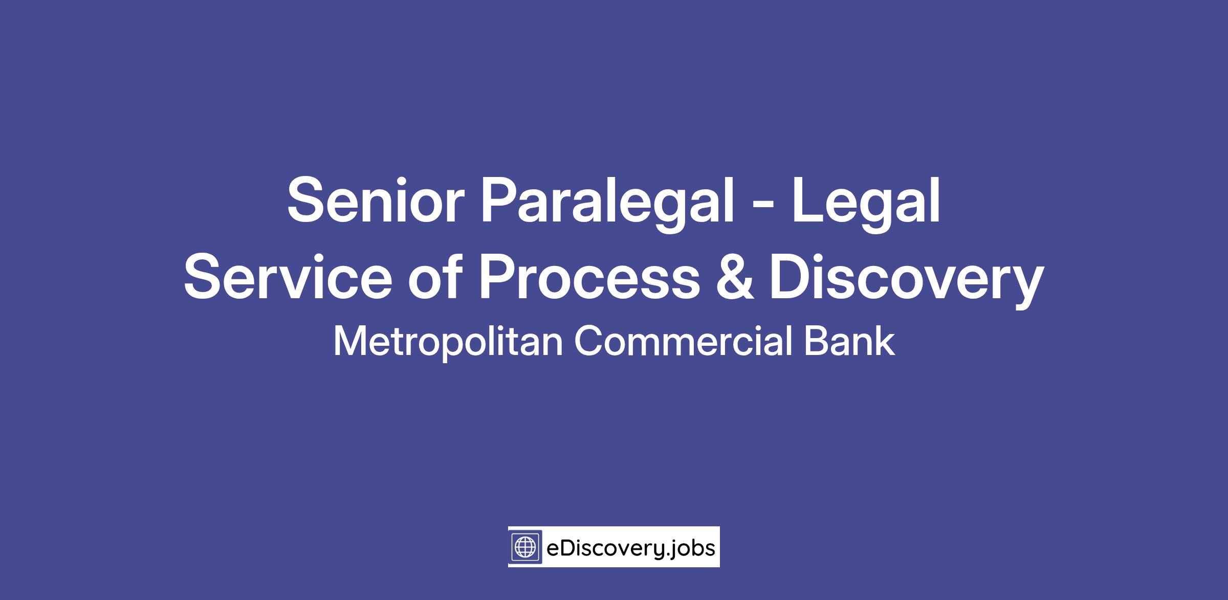 Under the supervision of Associate Legal Counsel - Litigation, the Senior Paralegal - Legal Service of Process and Discovery is responsible for managing the intake, tracking and resolution of legal documents served to the bank, including subpoenas, levies, garnishments, discovery-related tasks and other court orders. This position requires a highly skilled and detail-oriented professional with a strong understanding of legal procedures and the ability to efficiently handle a high volume of complex deadline-oriented legal documents. The Senior Paralegal will also lead efforts to reinforce the existing team and processes to maximize efficiency, transparency and workflow accountability. The Senior Paralegal leads efforts including but not limited to coordinating with governmental proponents of process, responding to subpoena requests, drafting written correspondence, and preserving records and other evidence. The position requires a demonstrated mastery of legal process, document management systems and research, and organizational skills. This position will report to the Associate Legal Counsel and will also work closely with the General Counsel, and other Legal Department attorneys. The Senior Paralegal is expected to interface regularly with various lines of business and support functions to collect, review and produce discoverable information, in compliance with the Federal and State Rules of Civil and Criminal Procedure, as well as the Federal Right to Financial Privacy.