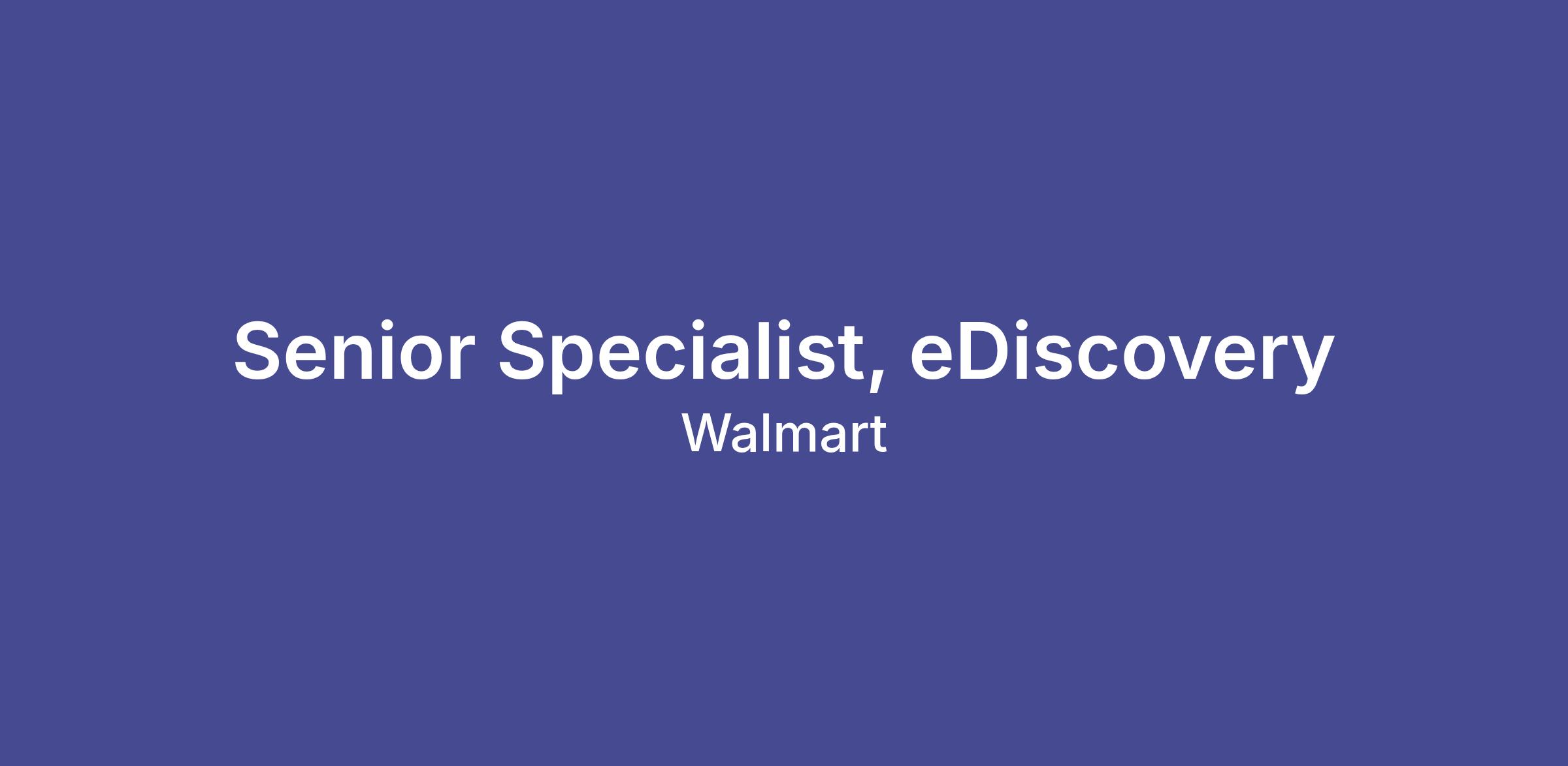 Are you looking for a rewarding career where you can learn and grow? Are you self-motivated and have a can-do attitude? If so, you may be the perfect fit for the Senior Specialist - eDiscovery position at Walmart!