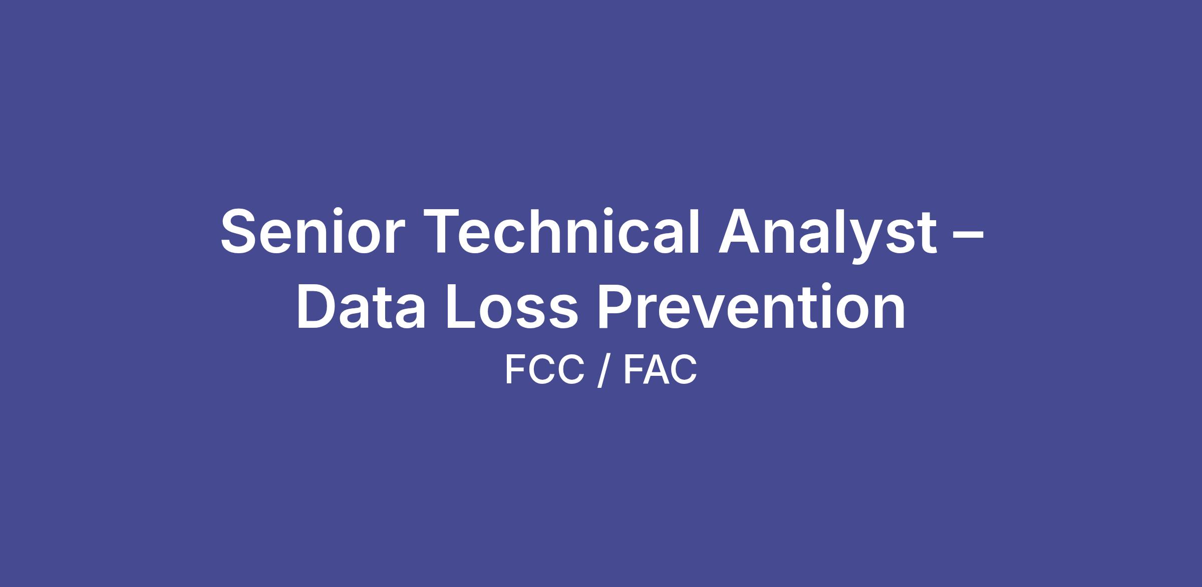 As a Senior Technical Analyst, you’ll help design, modernize, and operate FCC’s Data Loss Prevention (DLP) program, strengthening the organization’s information security, governance, and compliance posture. You’ll protect sensitive information across Microsoft 365 and third‑party applications while enabling secure and efficient collaboration. Through advanced problem‑solving and cross‑functional collaboration, you’ll address complex security and compliance challenges, improve operational maturity, and support scalable, resilient technology practices.