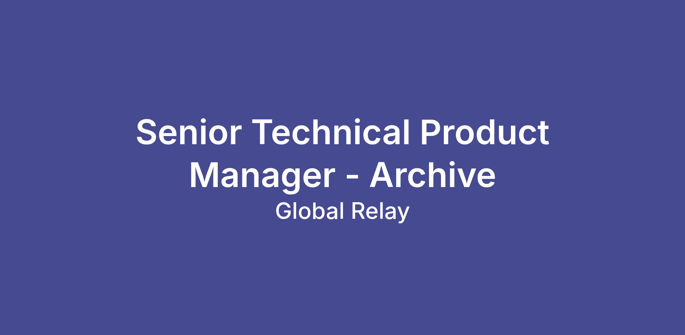 Global Relay delivers enterprise services to 23,000 customers in 90 countries, including 22 of the top 25 global banks. The Senior Technical Product Managers (TPMs) are part of the Product Management team that is responsible for executing product strategy, prioritizing and aligning roadmaps, and for researching and defining enhancements and upgrades to Global Relay services.