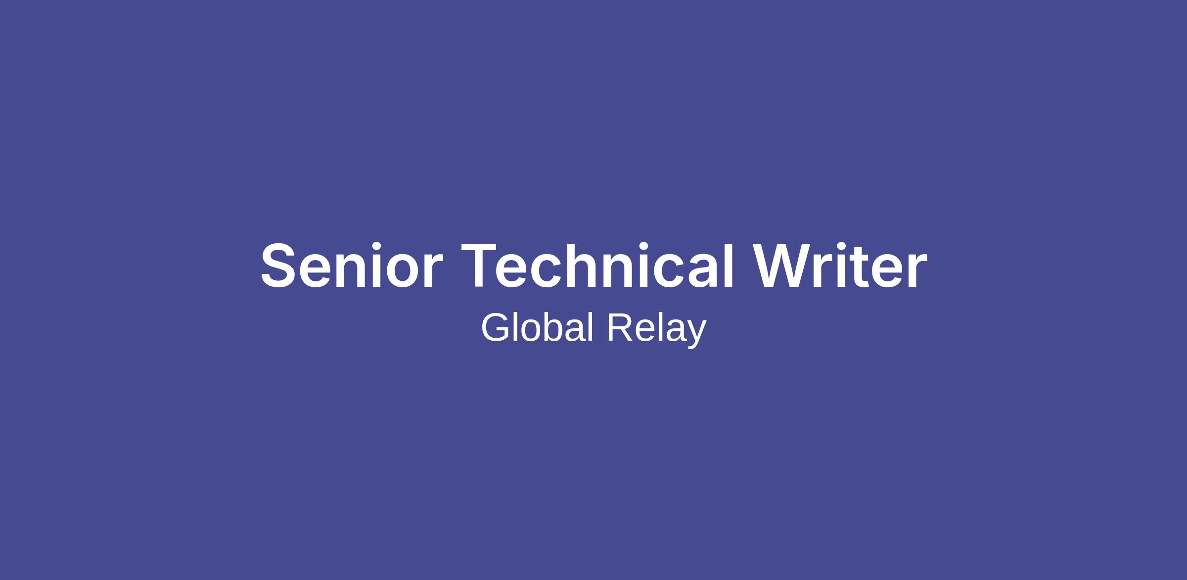 Global Relay has a rich history of innovatively solving compliant communication and archiving challenges for regulated organizations of all shapes and sizes. This is a fantastic opportunity for an experienced Technical Writer, dedicated to user advocacy and user success, to join our growing Technical Communication team.