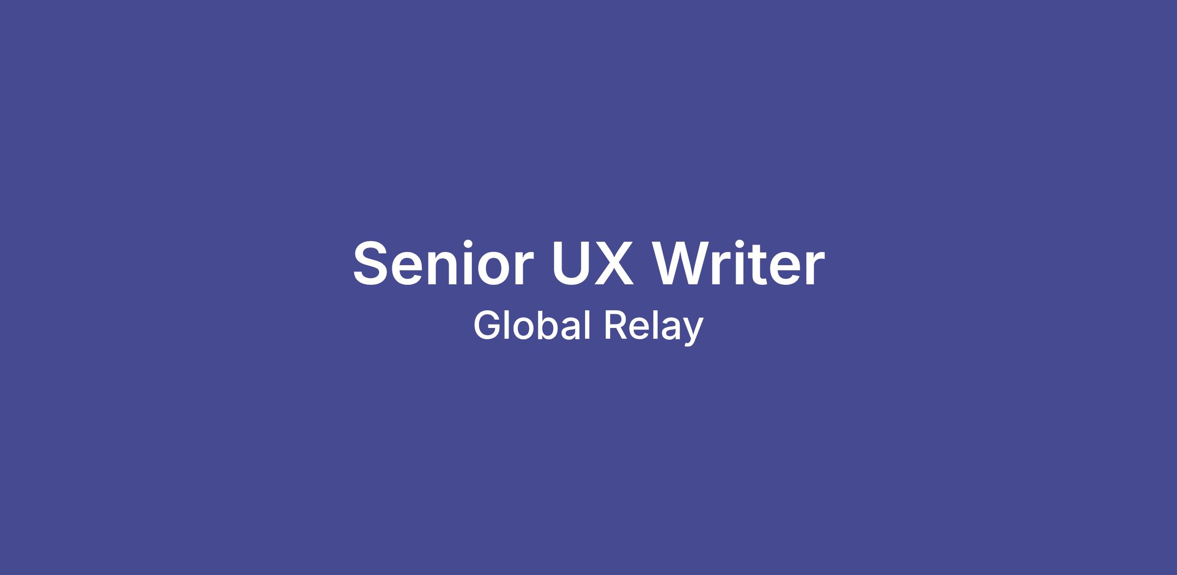Global Relay has a rich history of innovatively solving compliant communication and archiving challenges for regulated organizations of all shapes and sizes. Our Design First philosophy guides the development of our enterprise messaging and archiving applications. We are looking for a UX Writer to advocate for and empower our users through all stages of product design – from ideation through to design, localization, delivery, implementation, and adoption – with a focus on creating positive user experiences. The UX Writer will engage and guide our users with clarity, coherence, and conciseness, through the UI and its associated microcopy for multiple touchpoints: buttons, menus, error/confirmation messages, tooltips, navigational elements, CTAs, and more.