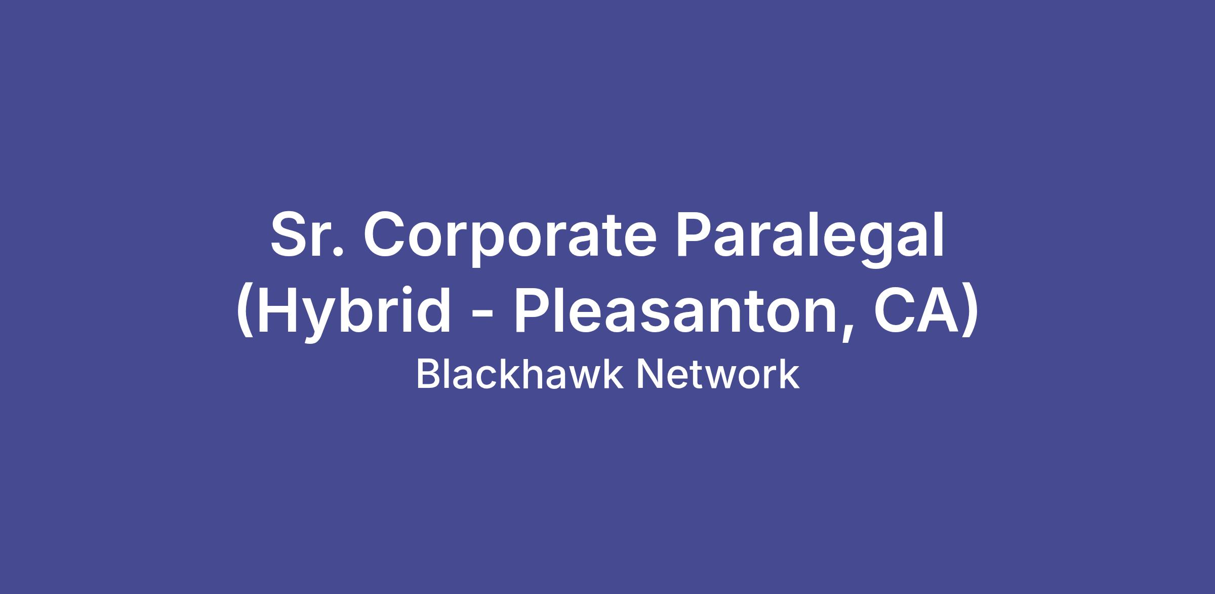 Blackhawk Network’s global legal department has a hybrid opening for a Sr. Corporate Paralegal/Litigation in its Pleasanton, California office. This position provides support to the legal group primarily in the area of litigation, corporate governance, SEC filings, entity maintenance and general corporate matters, and entails frequent interaction with our Board of Directors, senior executives, as well as senior executives of our foreign subsidiaries.
