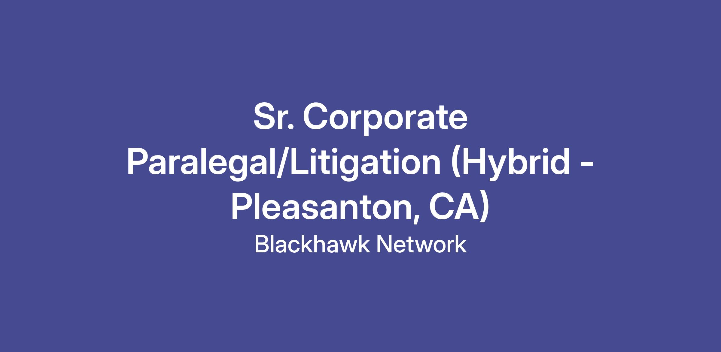 Blackhawk Network’s global legal department has a hybrid opening for a Sr. Corporate Paralegal/Litigation in its Pleasanton, California office. This position provides support to the legal group primarily in the area of litigation, corporate governance, SEC filings, entity maintenance and general corporate matters, and entails frequent interaction with our Board of Directors, senior executives, as well as senior executives of our foreign subsidiaries.