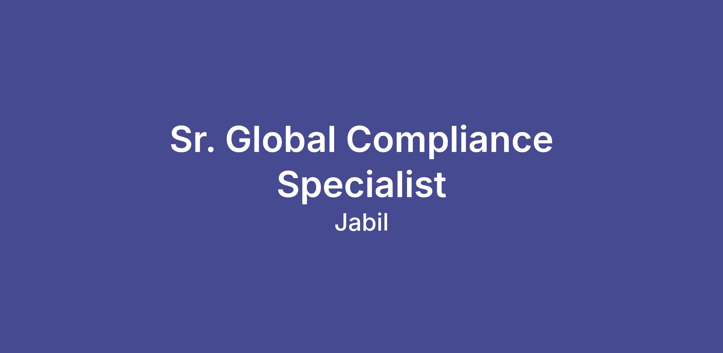 The EMEI Senior Compliance Specialist is a member of the Global Ethics & Compliance Team, which is a part of the Jabil Corporate Legal Department. The EMEI region covers the EU, Ukraine, Russia, Middle East and India. The role is based in Pune, India. The role also includes travel globally.
