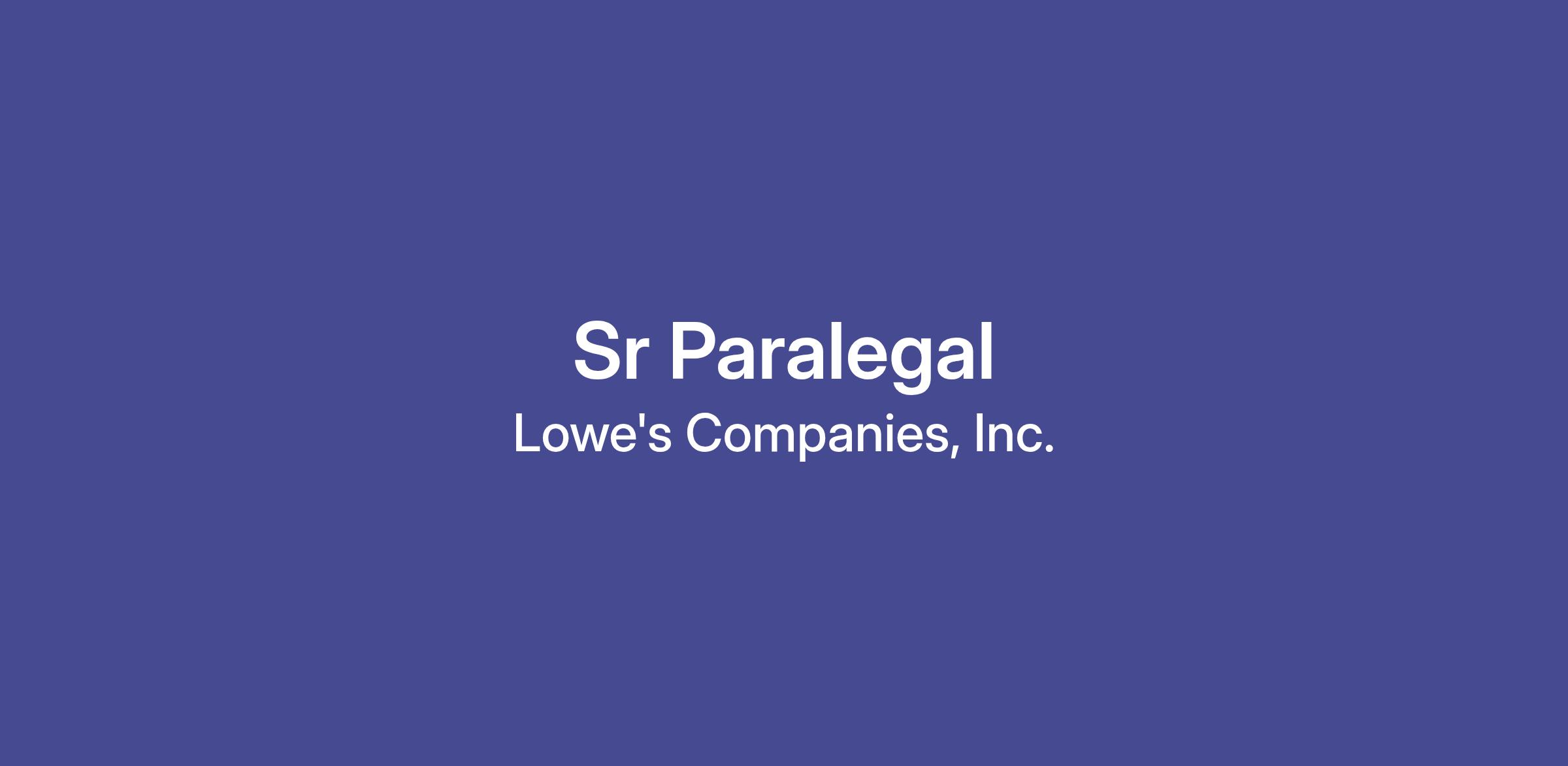The Lowe’s Law Department is seeking an enthusiastic and organized senior paralegal to support our Intellectual Property and Commercial Litigation team across patents, IP litigation, trademarks, domain management, and brand protection as well as commercial litigation. This role will provide paralegal support for attorneys on the team with preparation of internal and external reports and documents, and maintenance of an electronic matter-management system. The successful candidate must be highly organized and have the ability to prioritize a high-volume workload. In addition, the candidate should be detail oriented with a demonstrated ability to perform work independently and through collaboration.