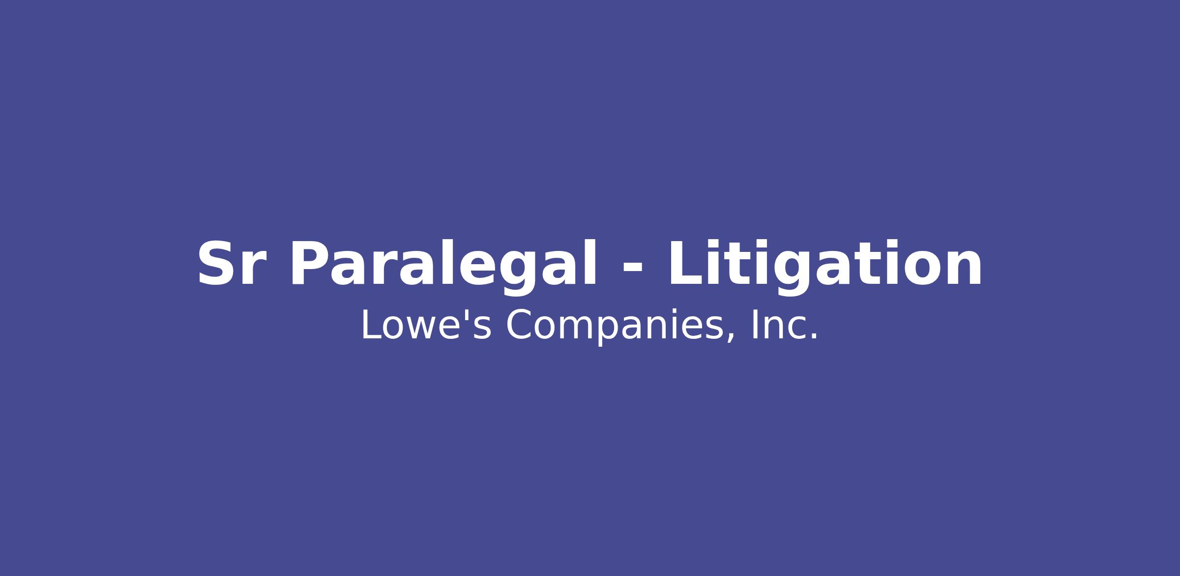 The Lowe’s Law Department is seeking a highly organized, proactive Senior Paralegal to support a broad range of commercial and general litigation matters, with a particular focus on discovery. This role will partner closely with in-house counsel, outside counsel, and internal business clients to manage key litigation workflows, including document collection, custodial outreach, written discovery, deposition preparation, and matter organization.
