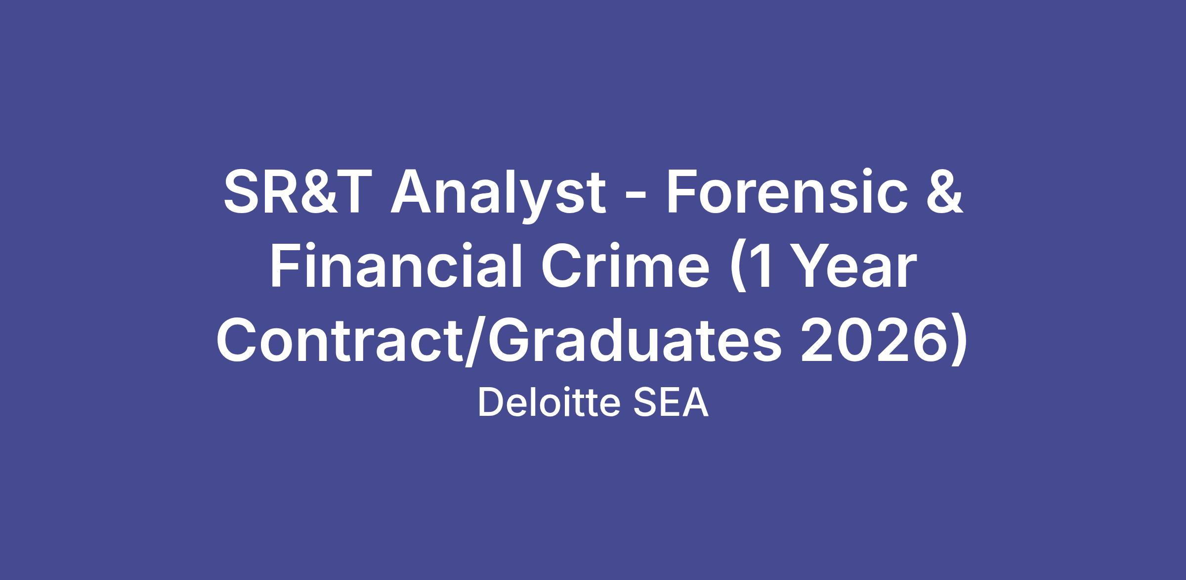 Job Title: SR&T Analyst - Forensic & Financial Crime: Financial Crime -Advisory - SG