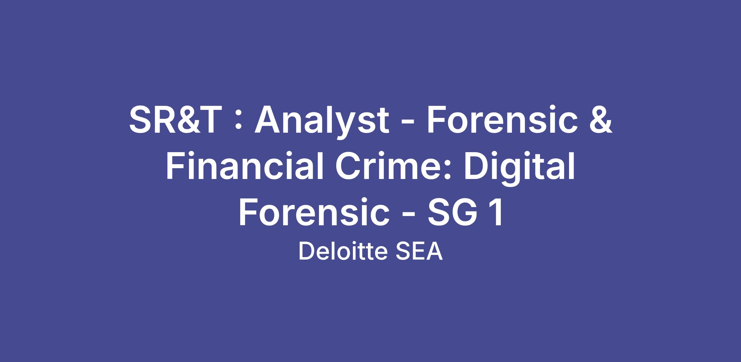 Deloitte is growing its Strategy, Risk, and Transaction (SR&T) – Forensic & Financial Crime practice in Southeast Asia. We protect brands of companies and communities by proactively advising on exposure to fraud, corruption, money laundering and other financial crime issues. Support our clients to address business disputes, regulatory concerns and actions, or sensitive internal investigations into fraud, corruption and misconduct by using digital forensic and eDiscovery technology and analytics.