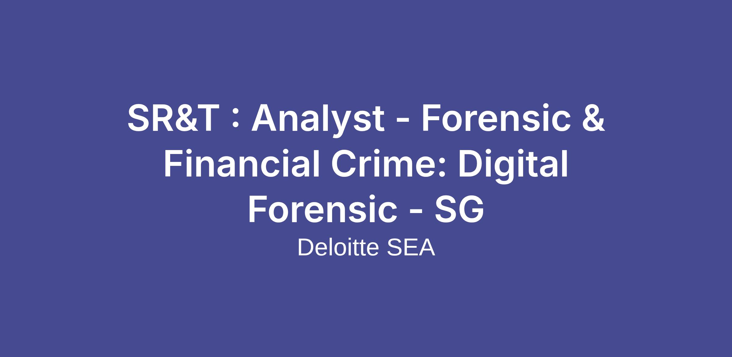 Deloitte is growing its Strategy, Risk, and Transaction (SR&T) – Forensic & Financial Crime practice in Southeast Asia. We protect brands of companies and communities by proactively advising on exposure to fraud, corruption, money laundering and other financial crime issues. Support our clients to address business disputes, regulatory concerns and actions, or sensitive internal investigations into fraud, corruption and misconduct by using digital forensic and eDiscovery technology and analytics.