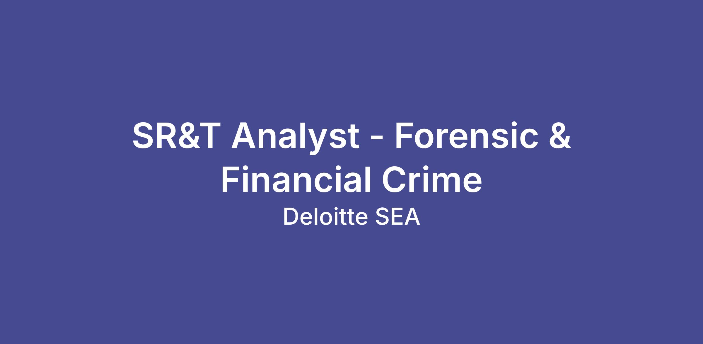 Job Title: SR&T Analyst - Forensic & Financial Crime: Financial Crime -Advisory - SG