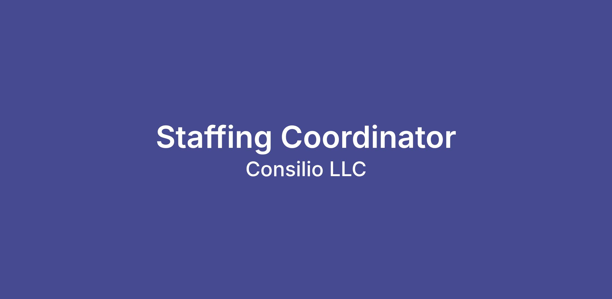 The Staffing Coordinator is responsible for recruiting and staffing of temporary employees for Consilio Services, the staffing agency division of Consilio. Helps implement and/or maintain employment and other recruiting and sourcing programs. Interviews and screens applicants.