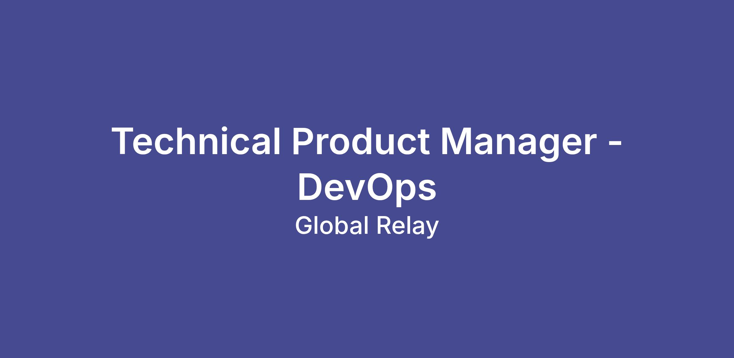 Global Relay delivers enterprise services to 23,000 customers in 90 countries, including 22 of the top 25 global banks. Technical Product Managers (TPMs) are part of the Product Management team that is responsible for executing product strategy, prioritizing and aligning roadmaps, and for researching and defining enhancements and upgrades to Global Relay services.