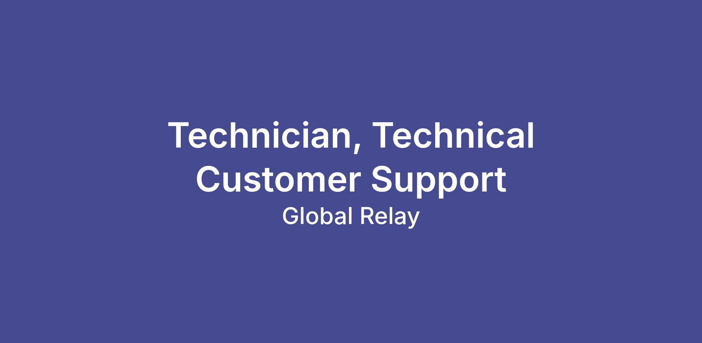 As a valued member of our Technical Customer Support Team, you will be the face and voice of Global Relay Inc. Excelling at this role means providing the customer with a seamless experience in terms of assisting our customers email and archiving environments are running smoothly. These responsibilities require independent and team-based analyses, initiative and good judgment, communication and problem solving while working with little supervision. This role puts you in the front seat with new challenges to conquer each and every day, allowing you to provide strong analytical and problem solving skills to the customers.