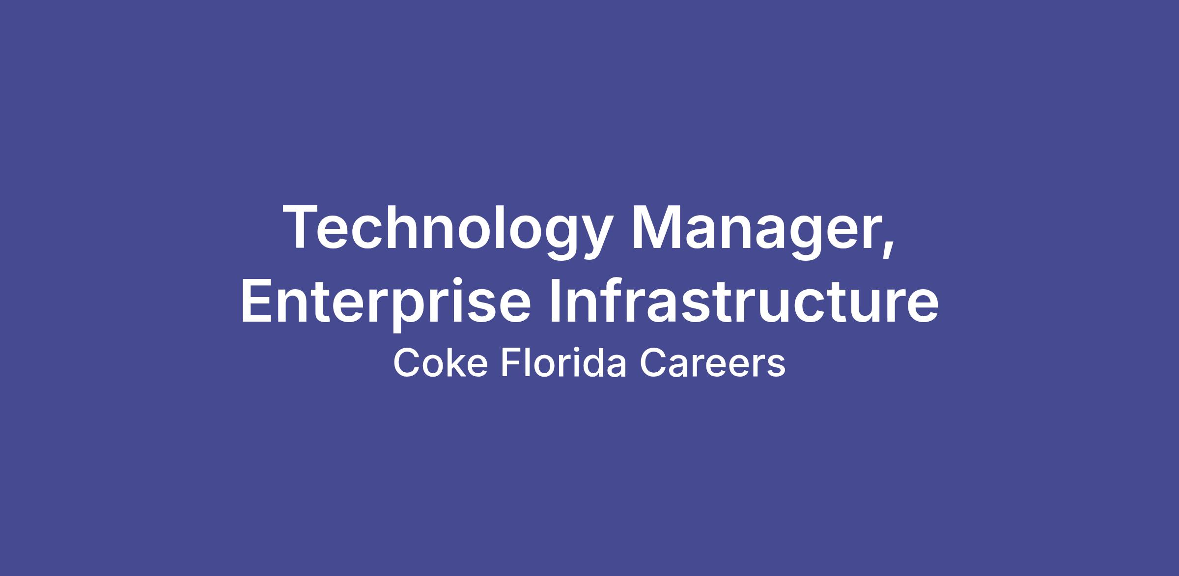 Coke Florida is searching for an Enterprise IT Infrastructure Manager based out of our Tampa HQ area office, working, Monday - Friday.
