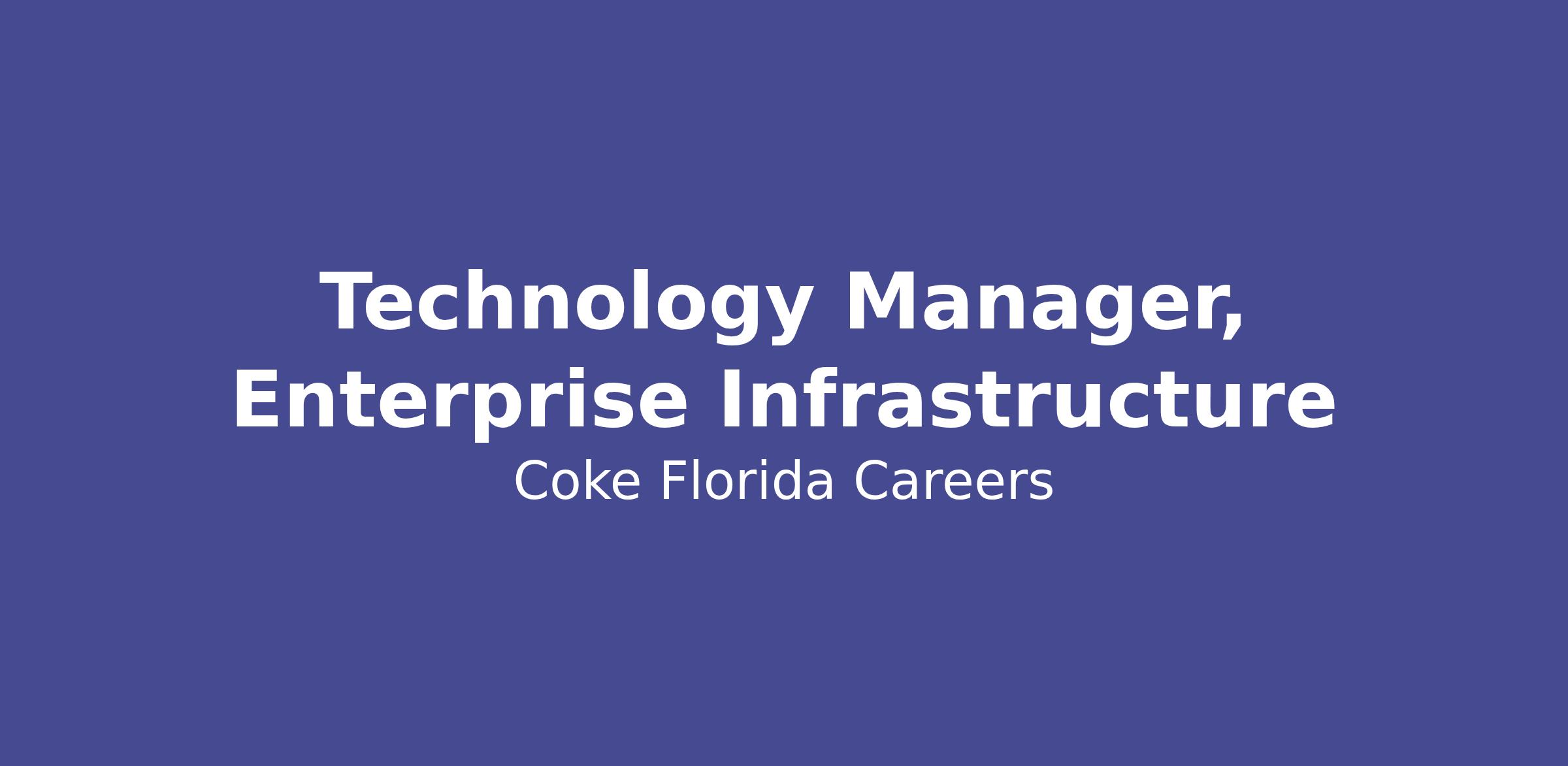 Coke Florida is searching for an Enterprise IT Infrastructure Manager based out of our Tampa HQ area office, working, Monday - Friday.